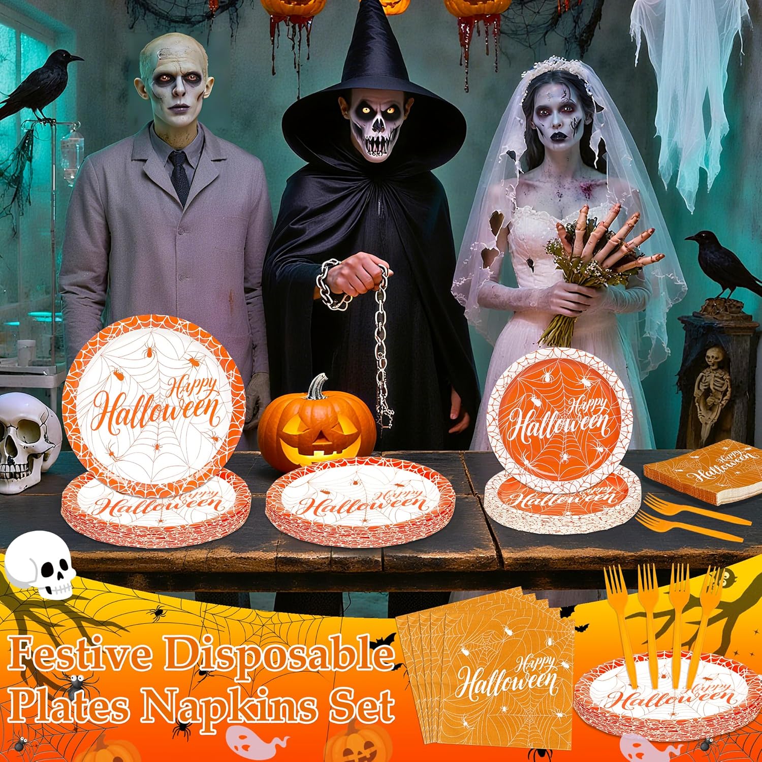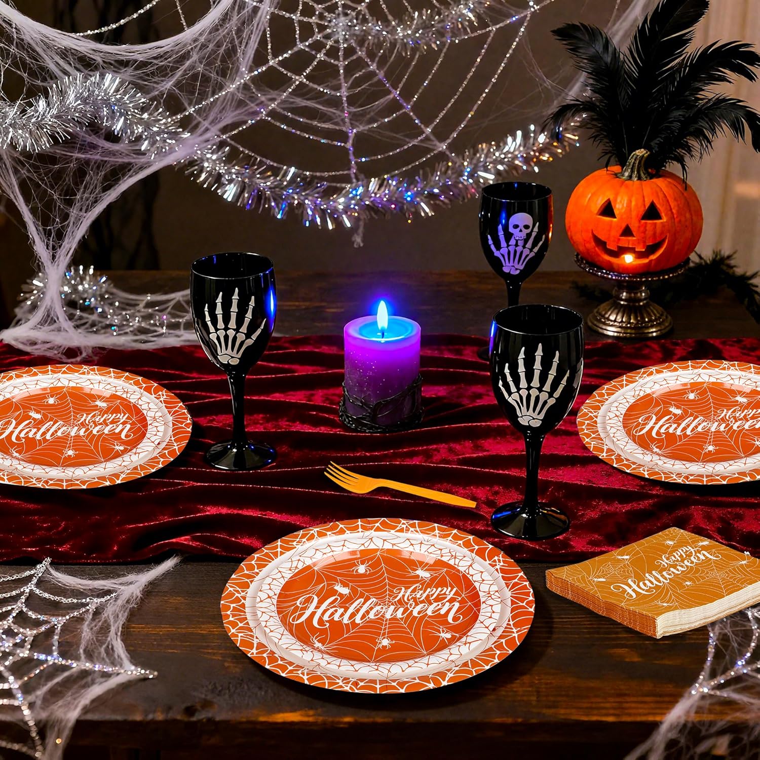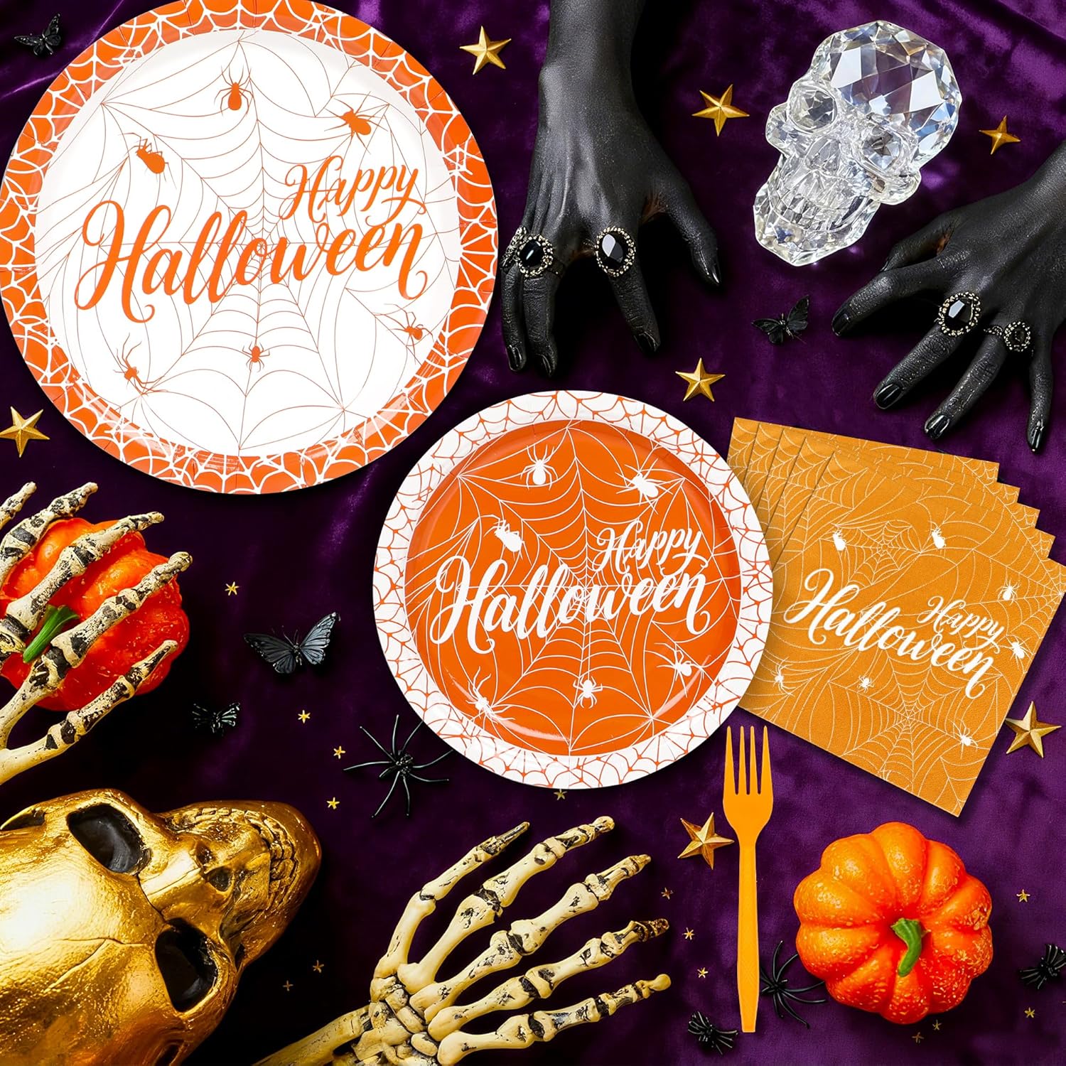 100 Pieces Halloween Plates and Napkins Set Party Review halloween tableware