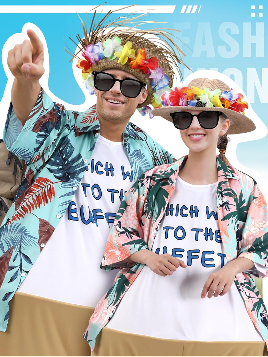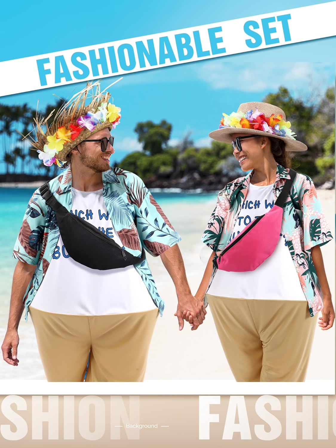 12 Pcs Adult Tacky Tourist Costume – Couples Hawaiian Review halloween couple costumes