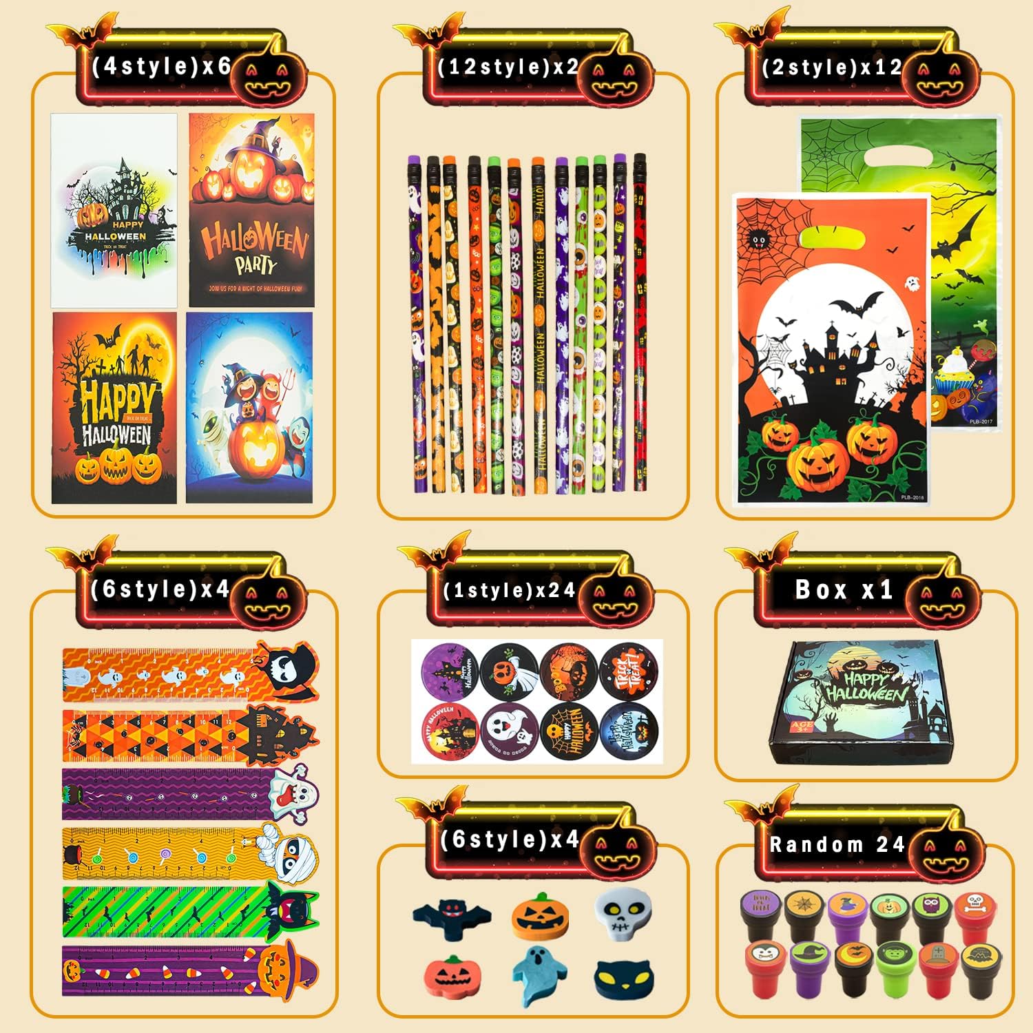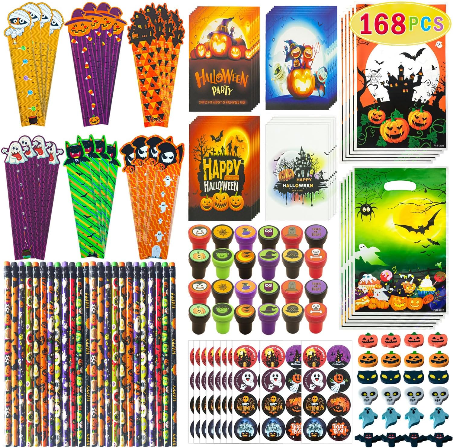 168 PCS Halloween Party Favors,24 Pack Stationery Review halloween goodie bags