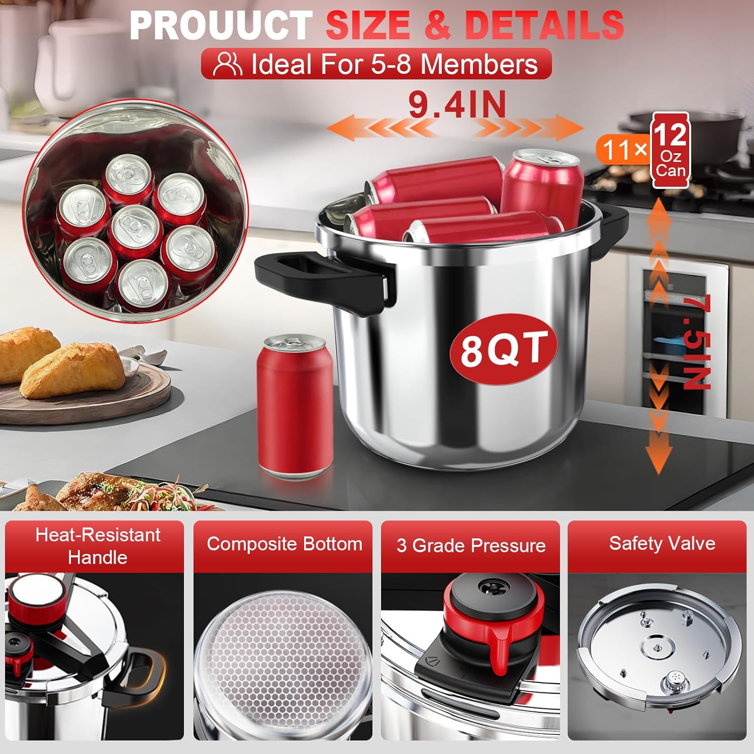18/8 Stainless Steel Pressure Cooker 8 Qt, [One-Hand Review pressure cooker