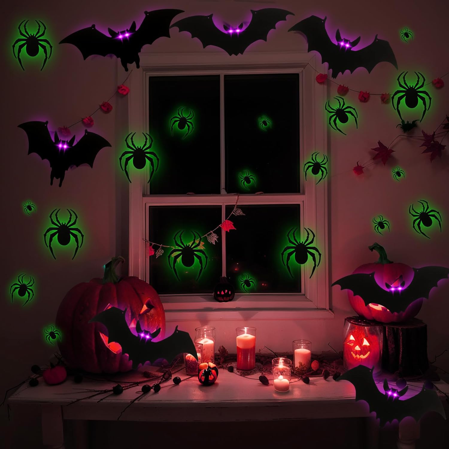 48 Pcs 3D Halloween Wall Decor 24 Light up Bats 24 LED Review halloween setup guide