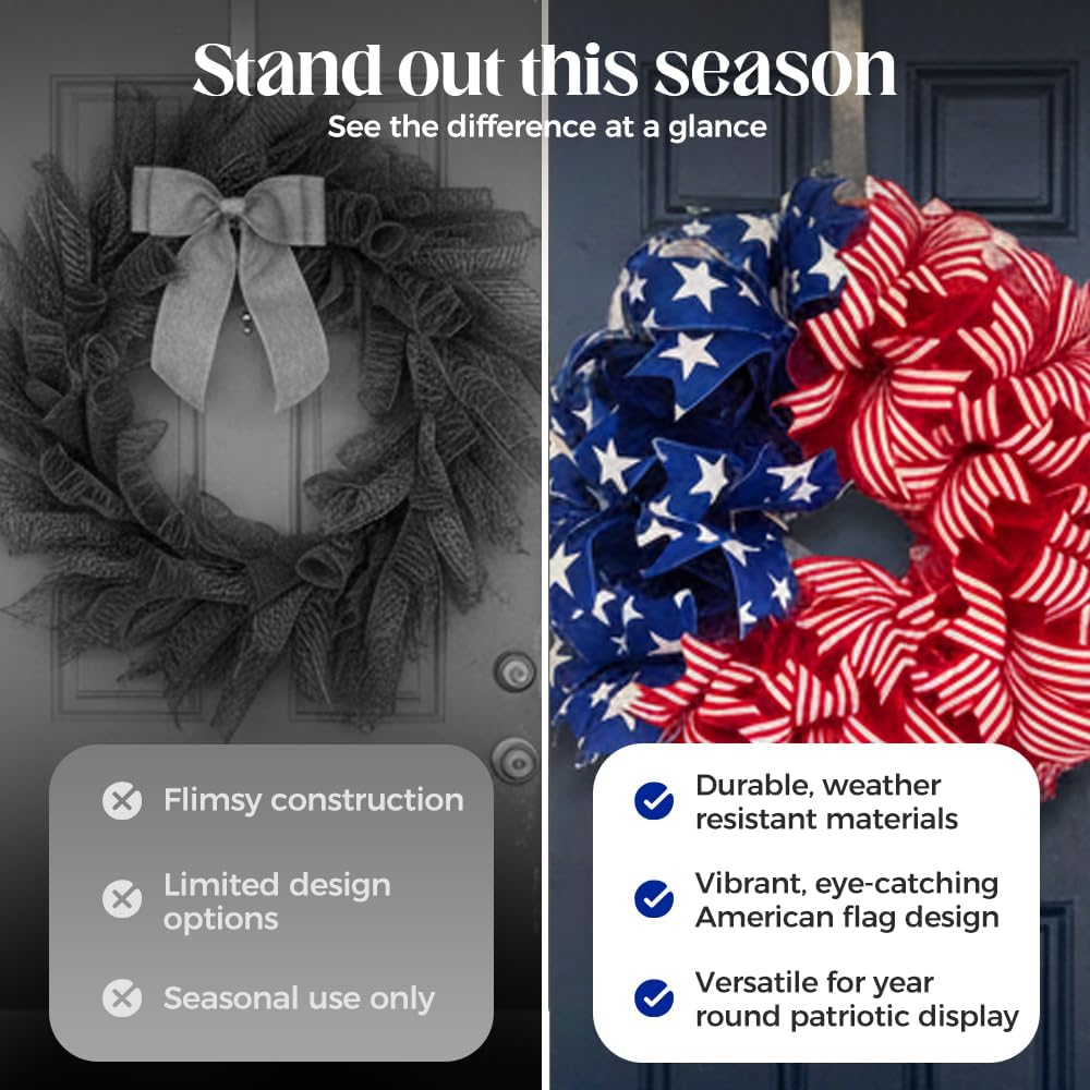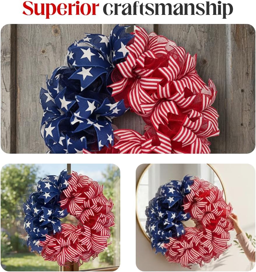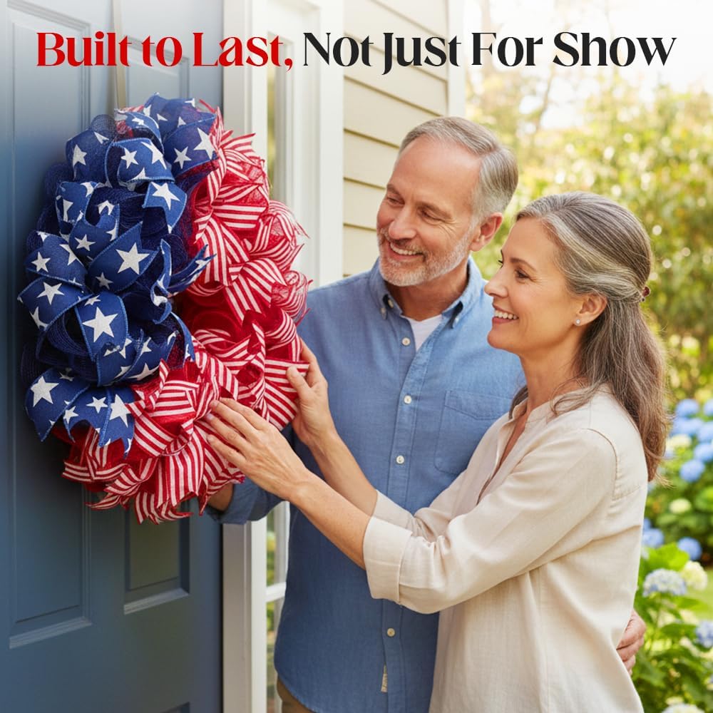 4th of July Wreath for Front Door, Red White and Blue Review wreath