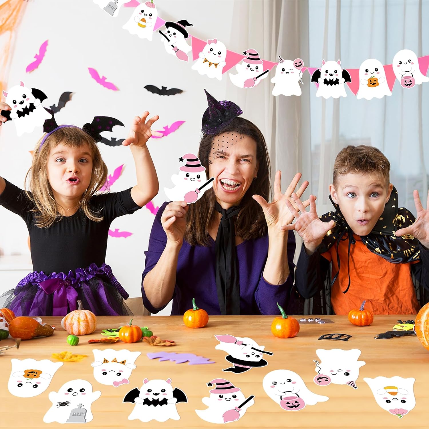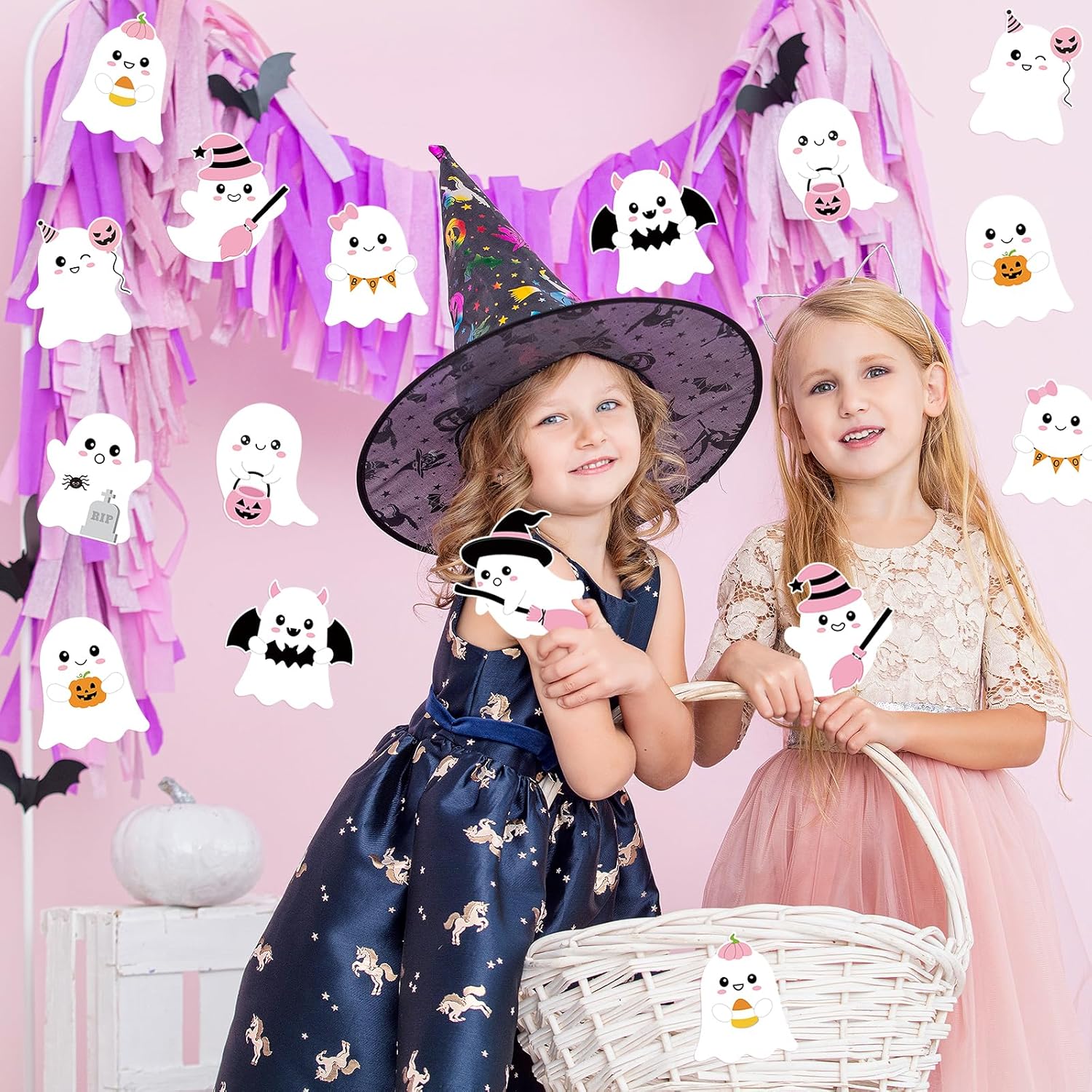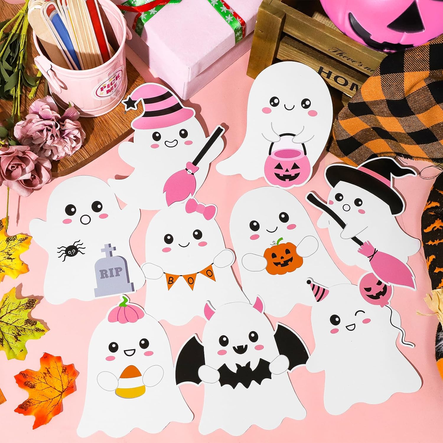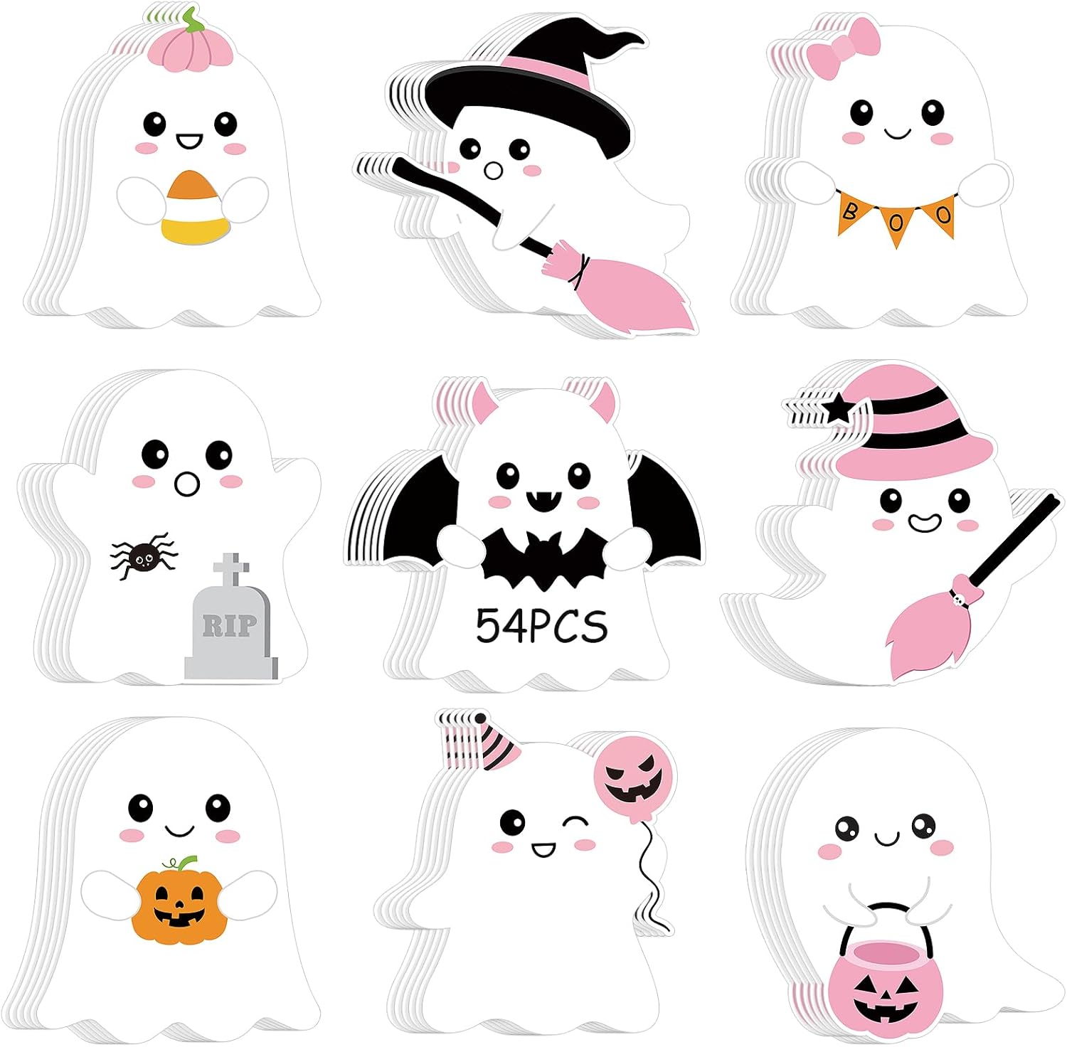 54 Pcs Halloween Cut-Outs Double Printed Pink Ghost Review halloween classroom decorations