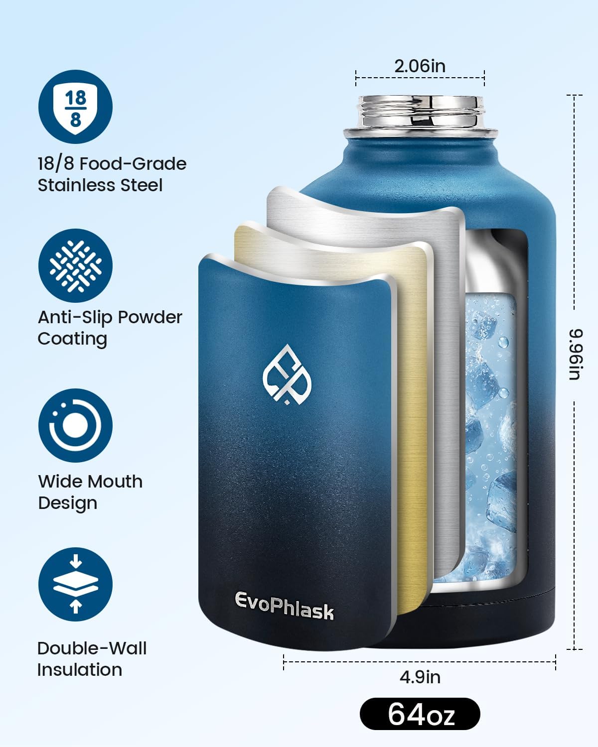 64 oz Insulated Water Bottle(Cold for 48Hrs), Large Review insulated water bottle