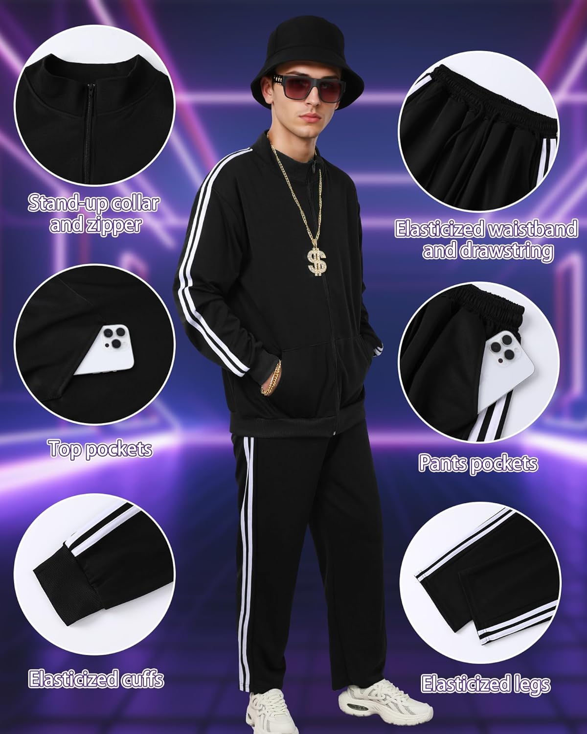 80s Outfit for Men 90s Hip Hop Tracksuit Halloween Review halloween costumes for men