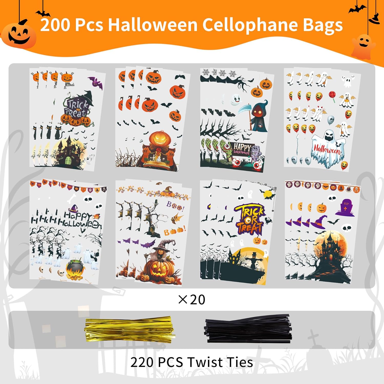 Ankyery 200 Pcs Halloween Cellophane Treat Bags,Candy Review halloween candy bags