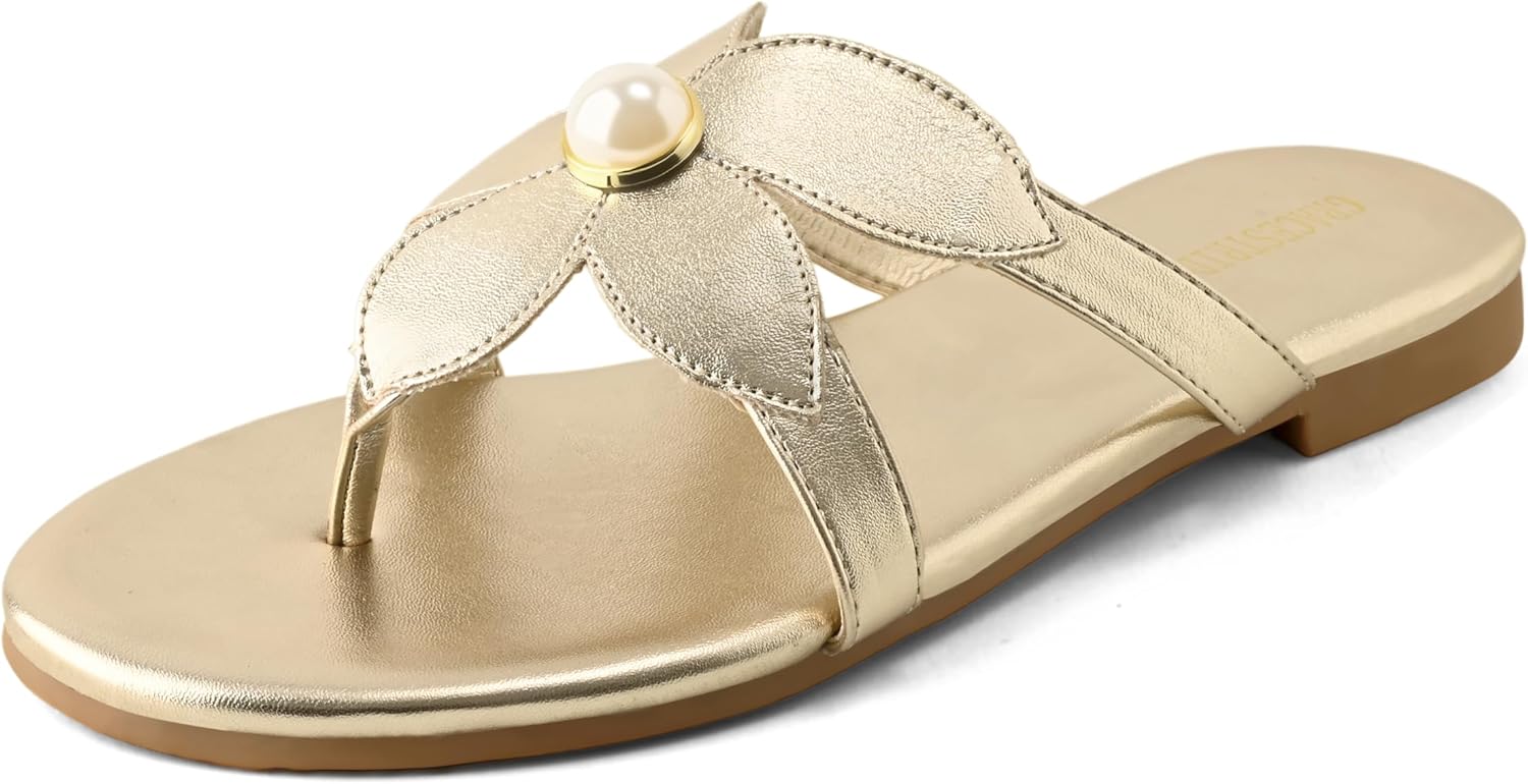 Flat Sandals for Women Pearl Slides Flower Flip Flops Review flip flops