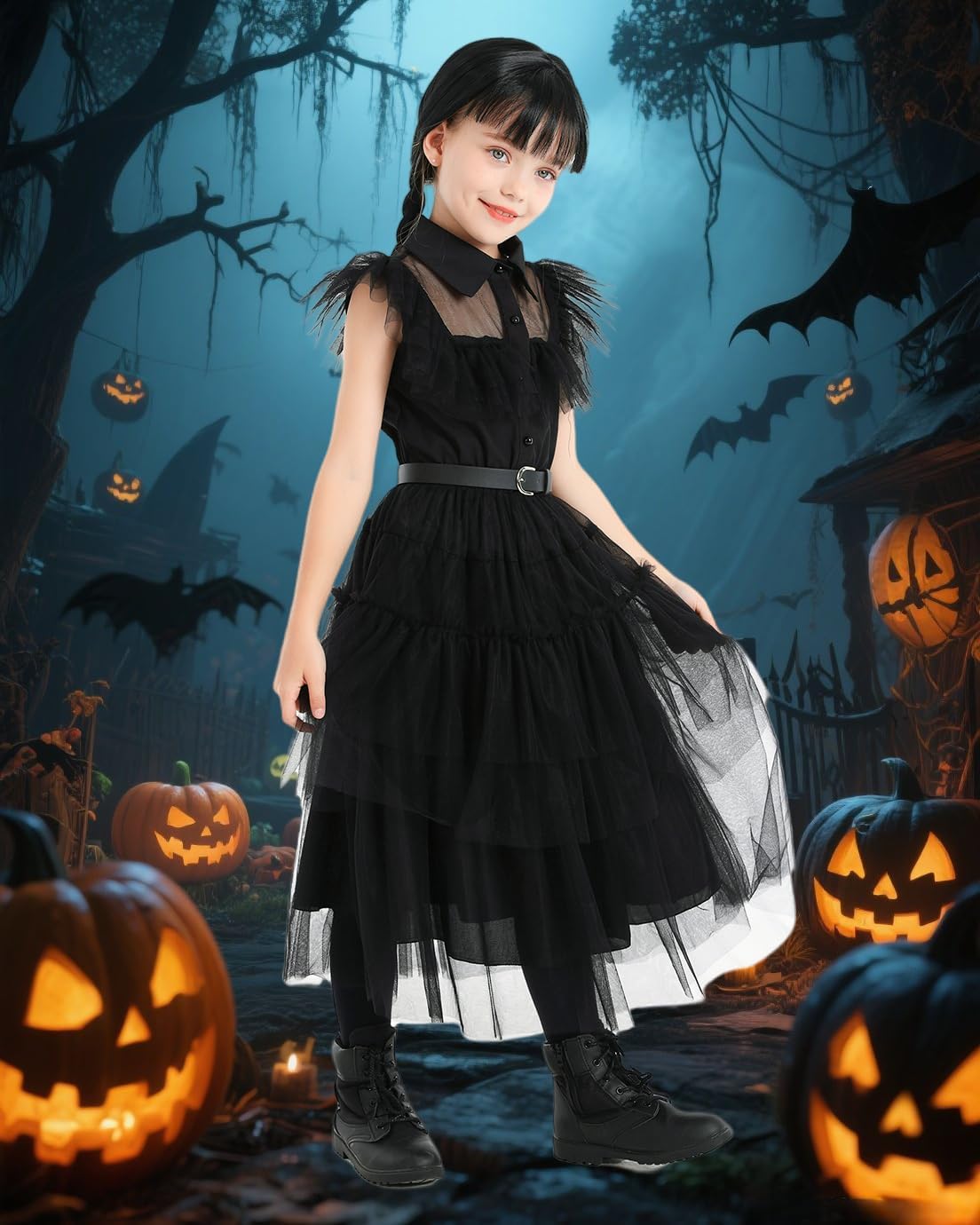 Girls Black Dress for Halloween Costume Kids Family Review halloween family costumes