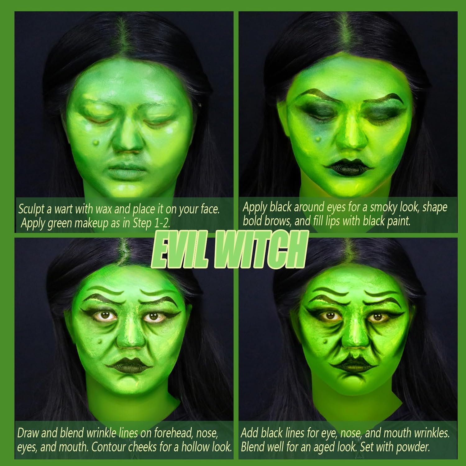 Green Witch Makeup Kit,Elphaba Costume Face Paint,Black Review halloween special effects makeup