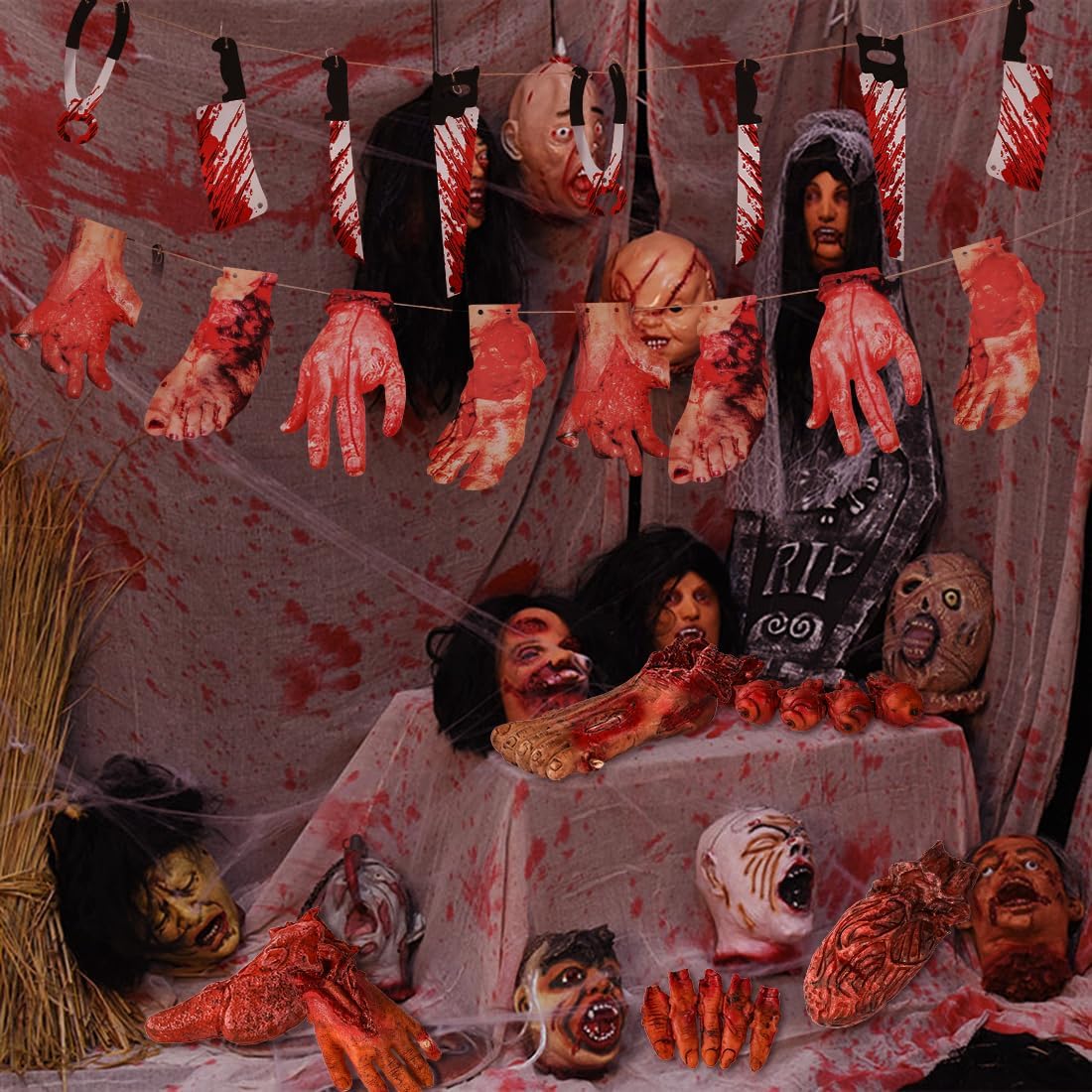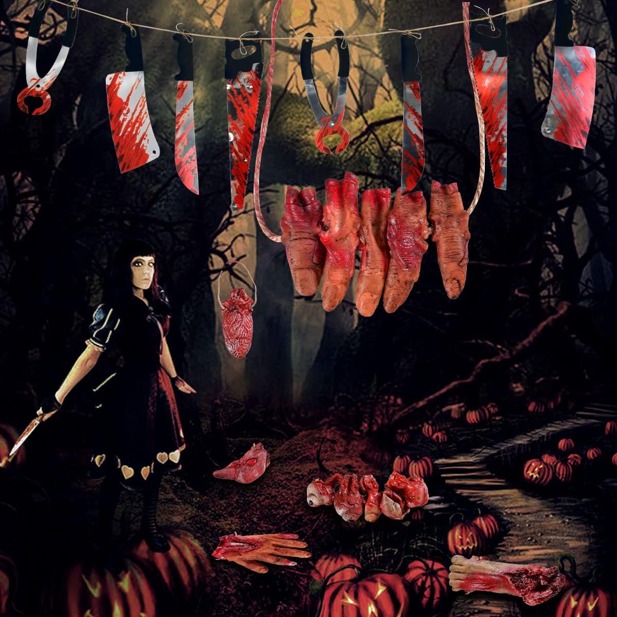 Halloween Decorations Blood Weapon Garland Banner Props Review halloween haunted house props