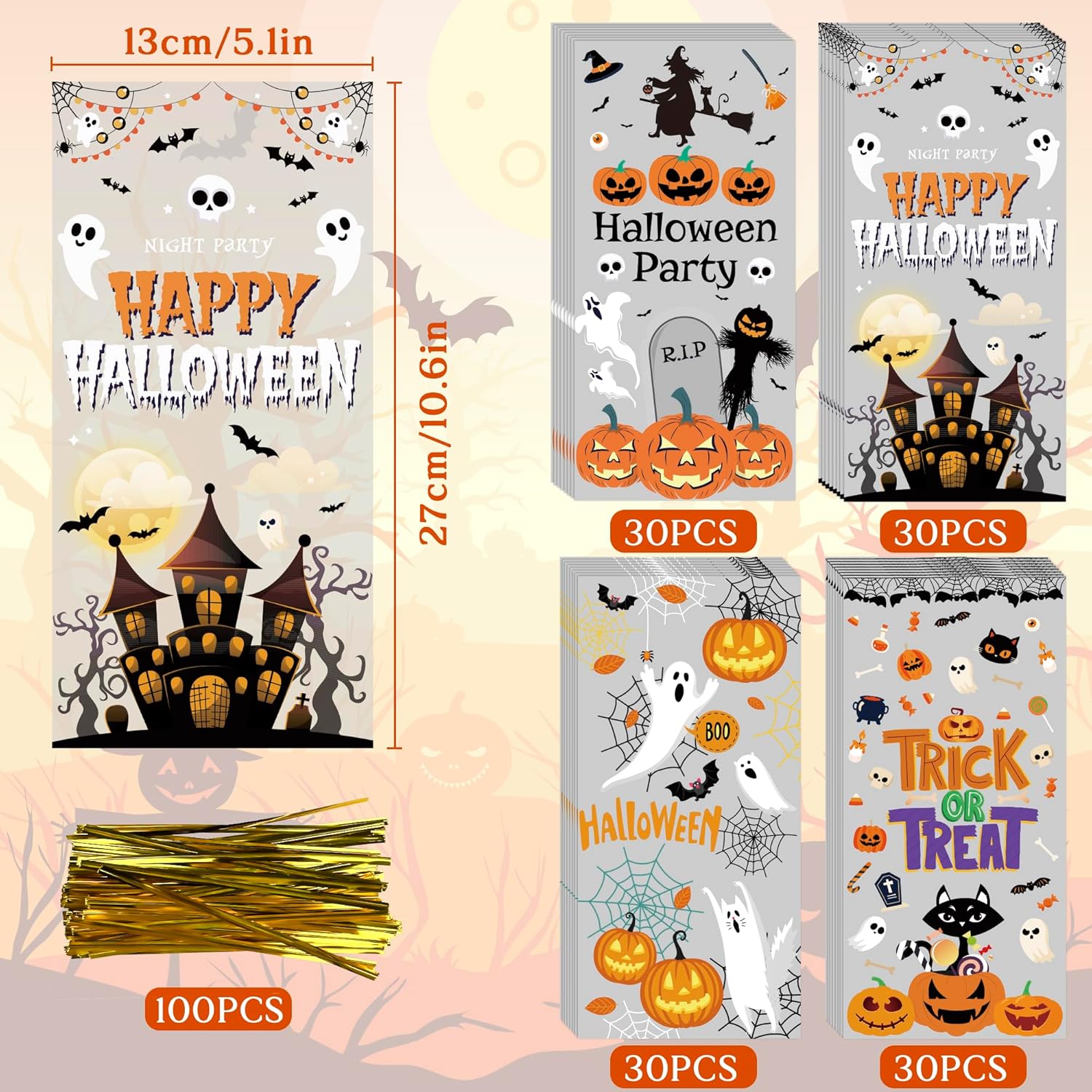 Added to wishlistRemoved from wishlist 0 100 PCS Black Orange Polka Dots Star Stripe Cellophane Review halloween candy bags