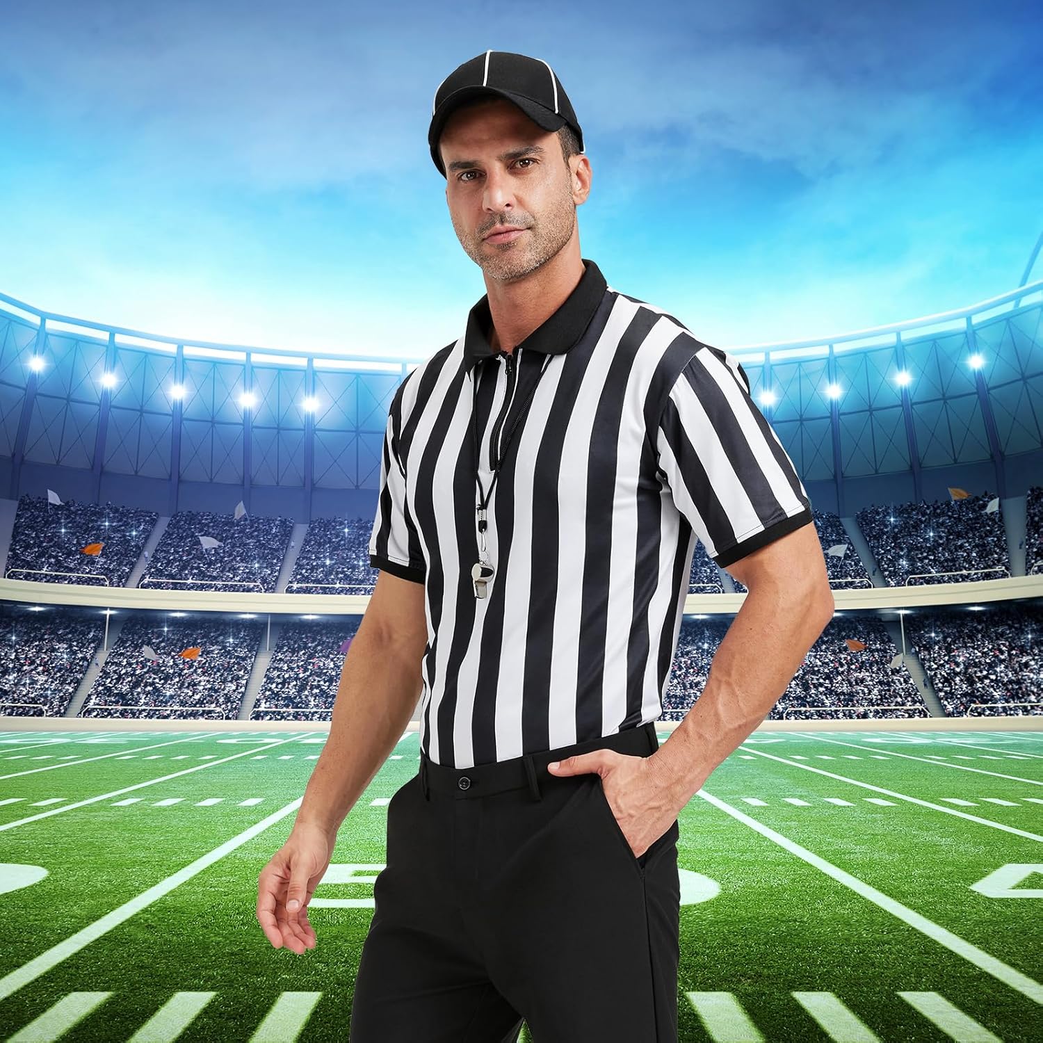 Men’s Referee Costume Kit,Referee Shirt Stripe Umpire Review halloween cosplay outfits