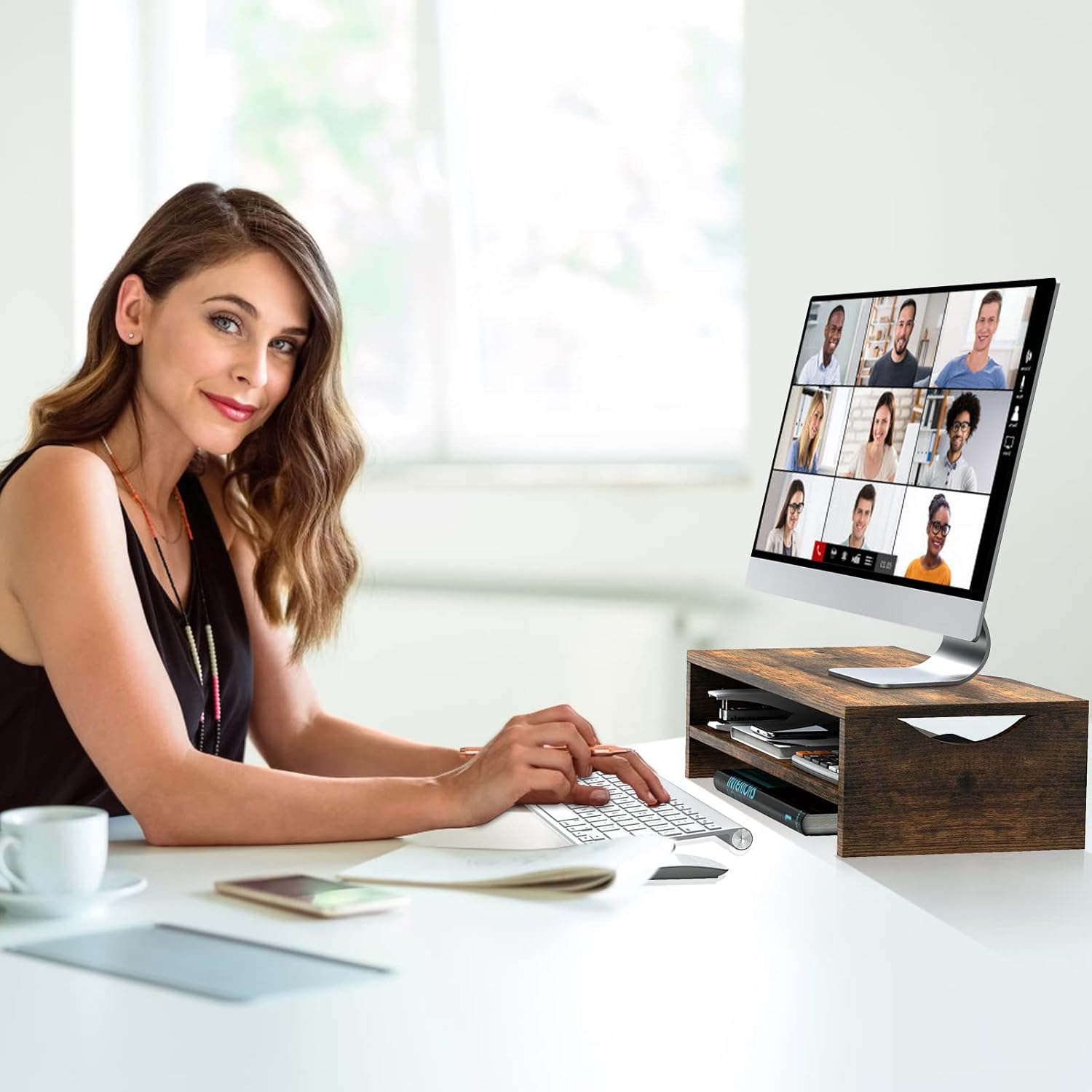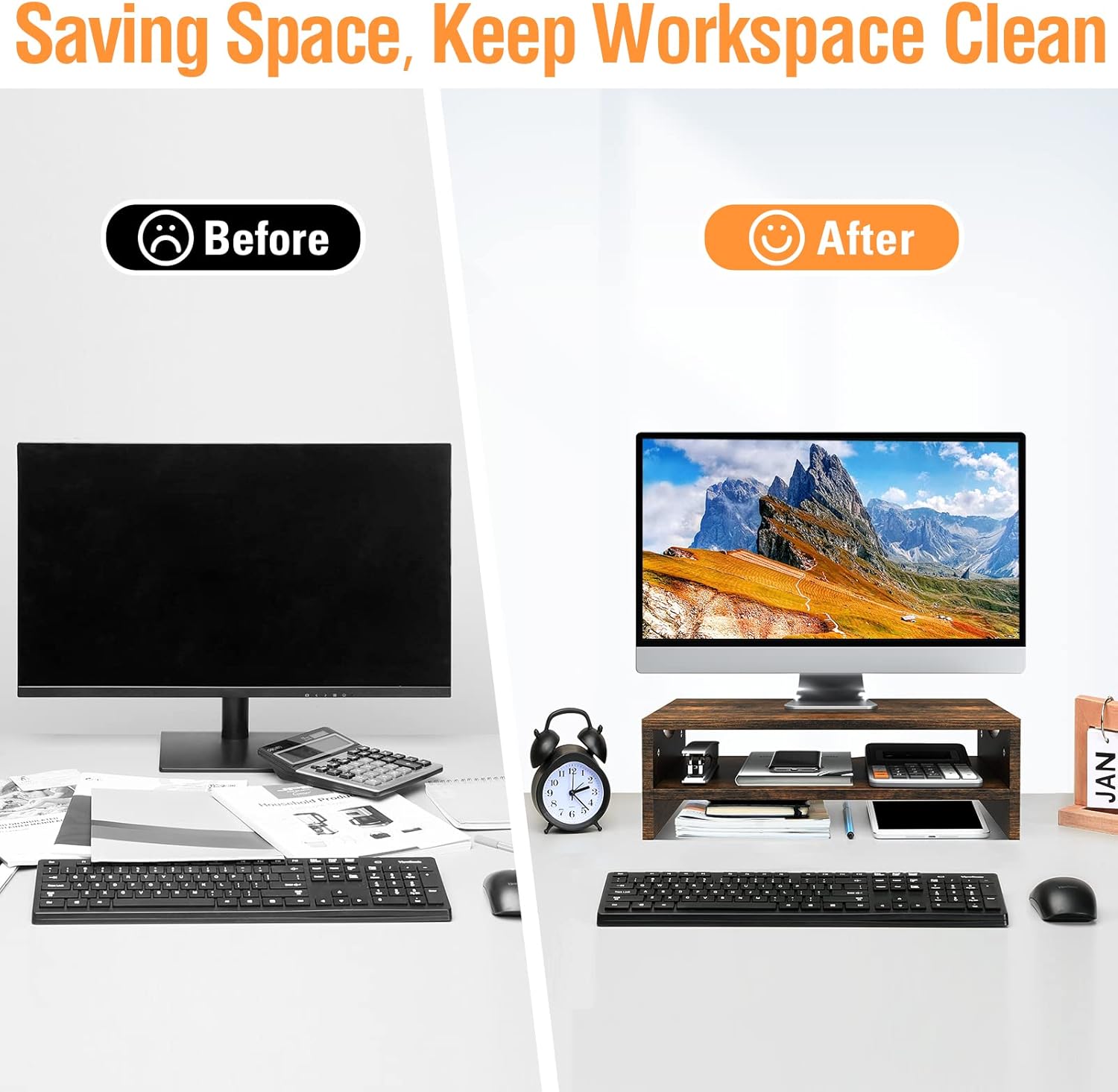 Monitor Stand Riser, 2 Tiers Wood Monitor Riser Stand Review monitor stand
