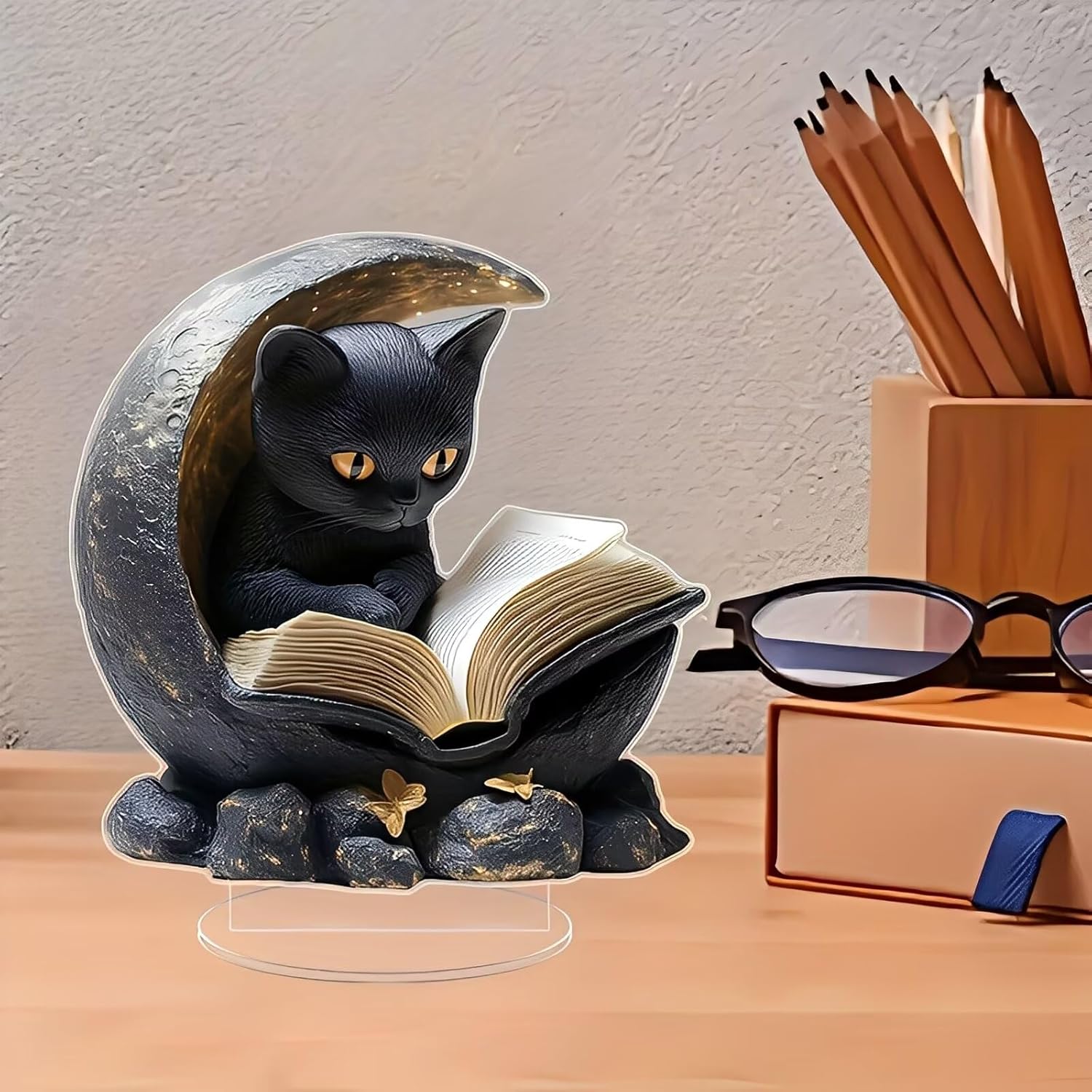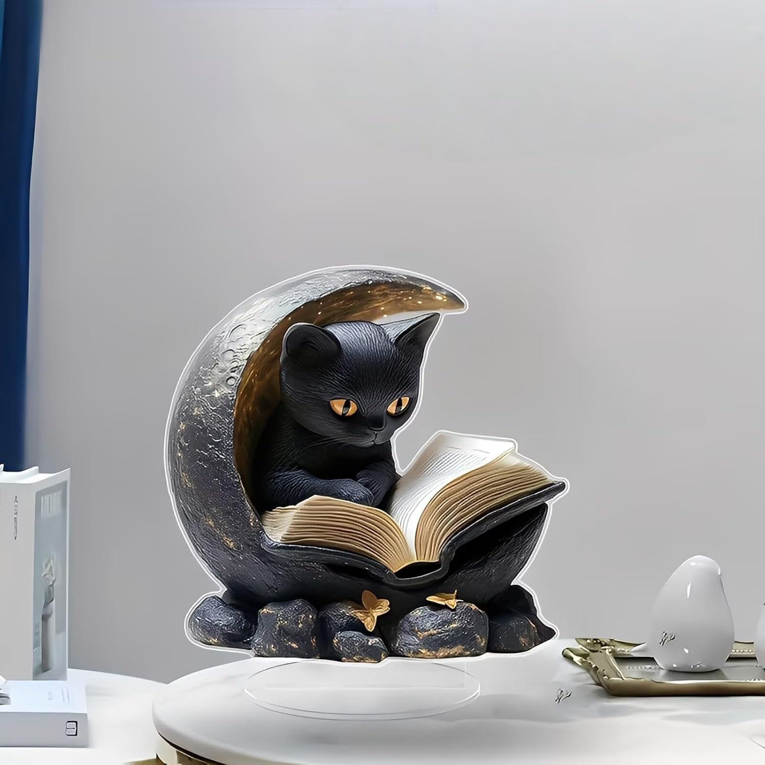 Moon Black Cat Reading Acrylic Desktop Decoration, Review halloween decoration ideas for home