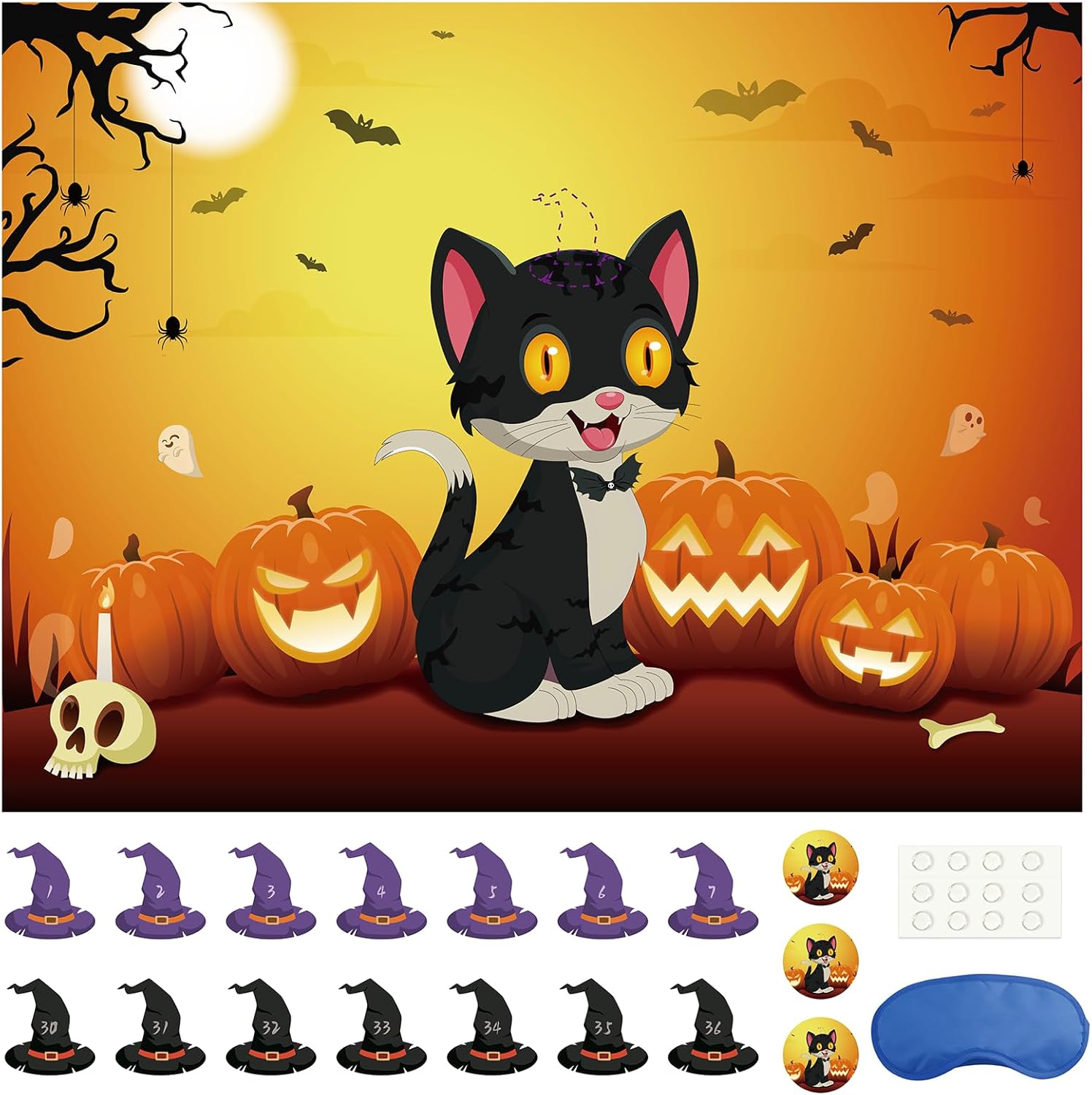 Morcheiong Halloween Game Pin The Tail on The Cat Game Review halloween party games