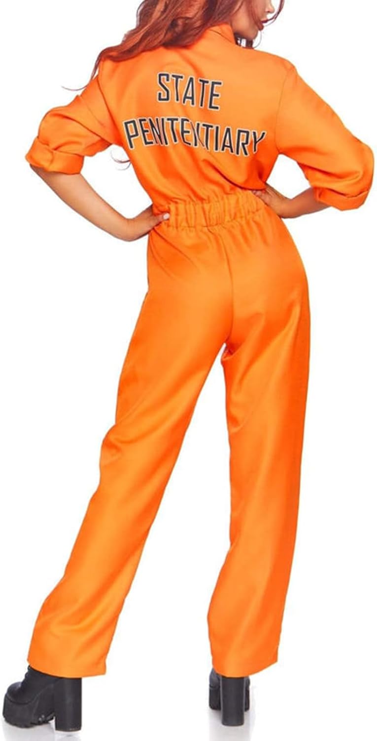 Orange Prison Jumpsuit Costume Women Men Jail Halloween Review halloween cosplay outfits