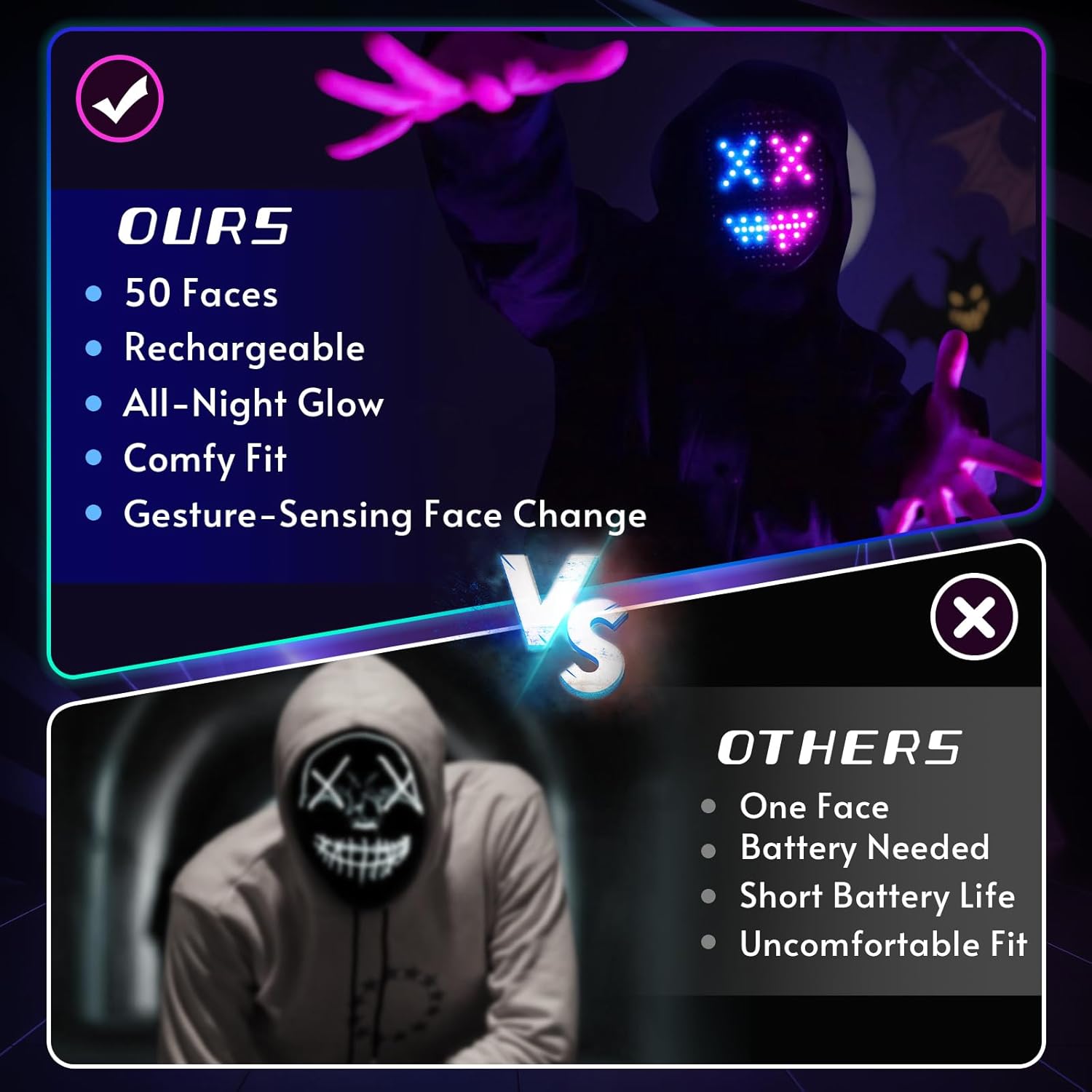 QAQ LED Mask Light Up Mask with Gesture Sensing, Cool Review halloween masks