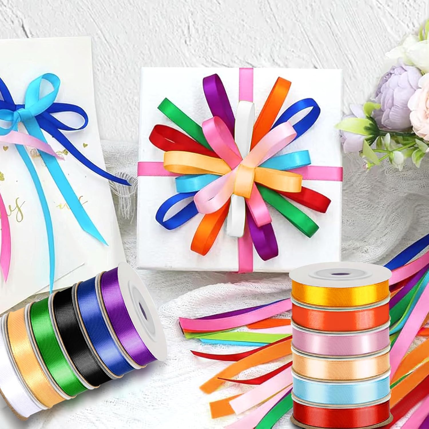 Rainbow Satin Ribbon, 12 Colors 3/8 Inch x 12 Rolls Review ribbon