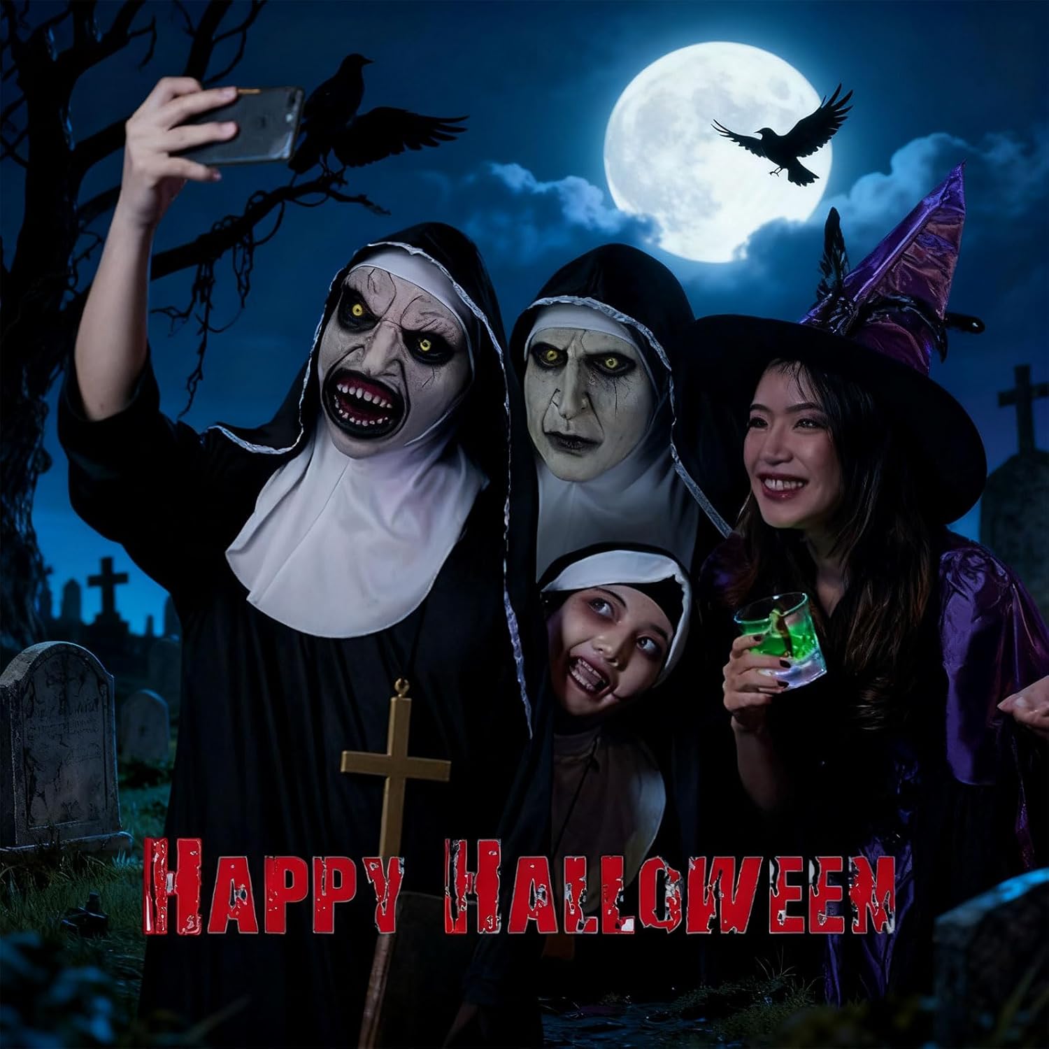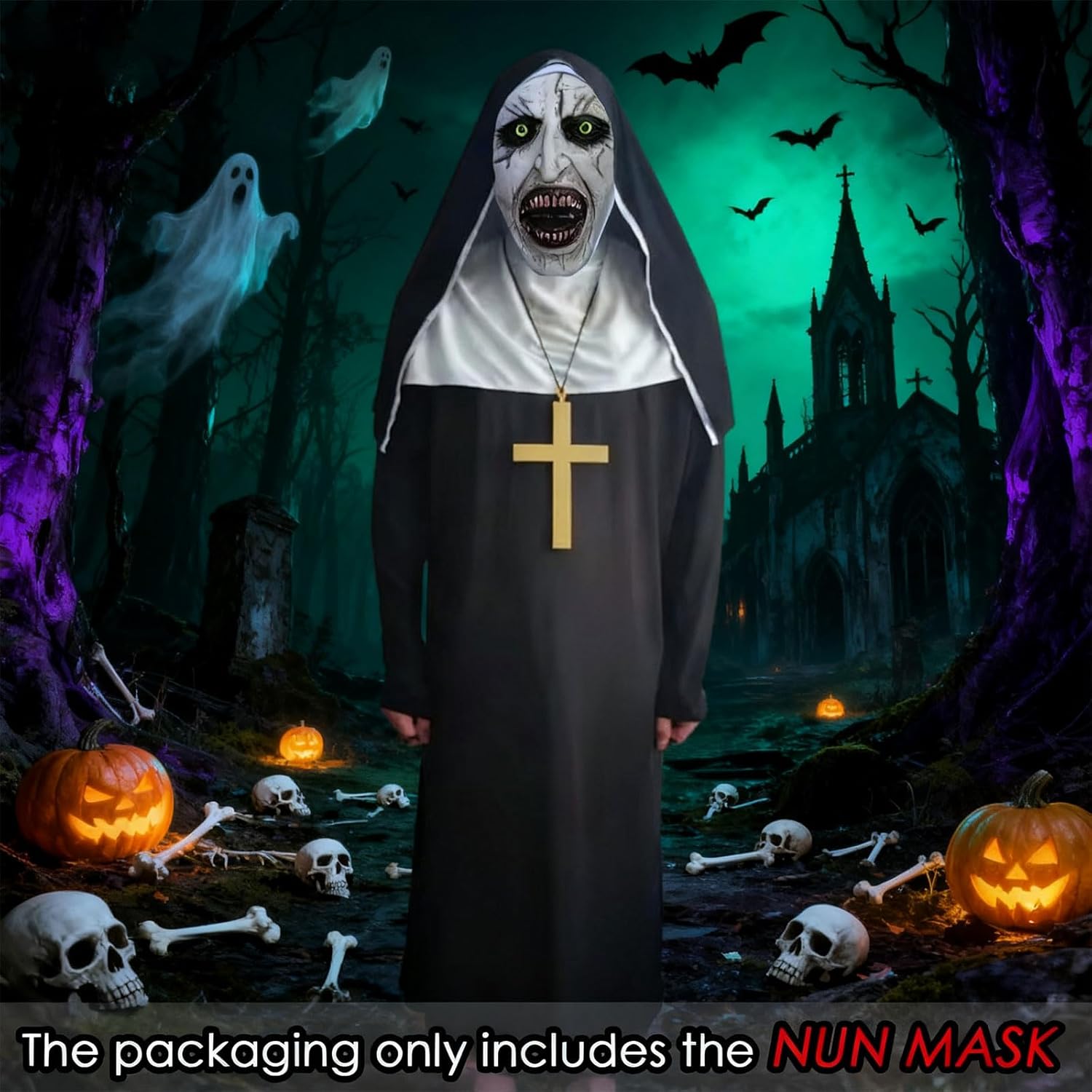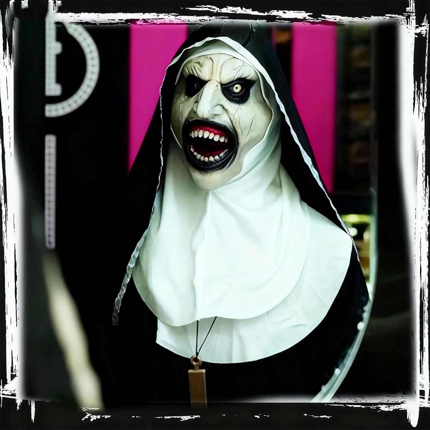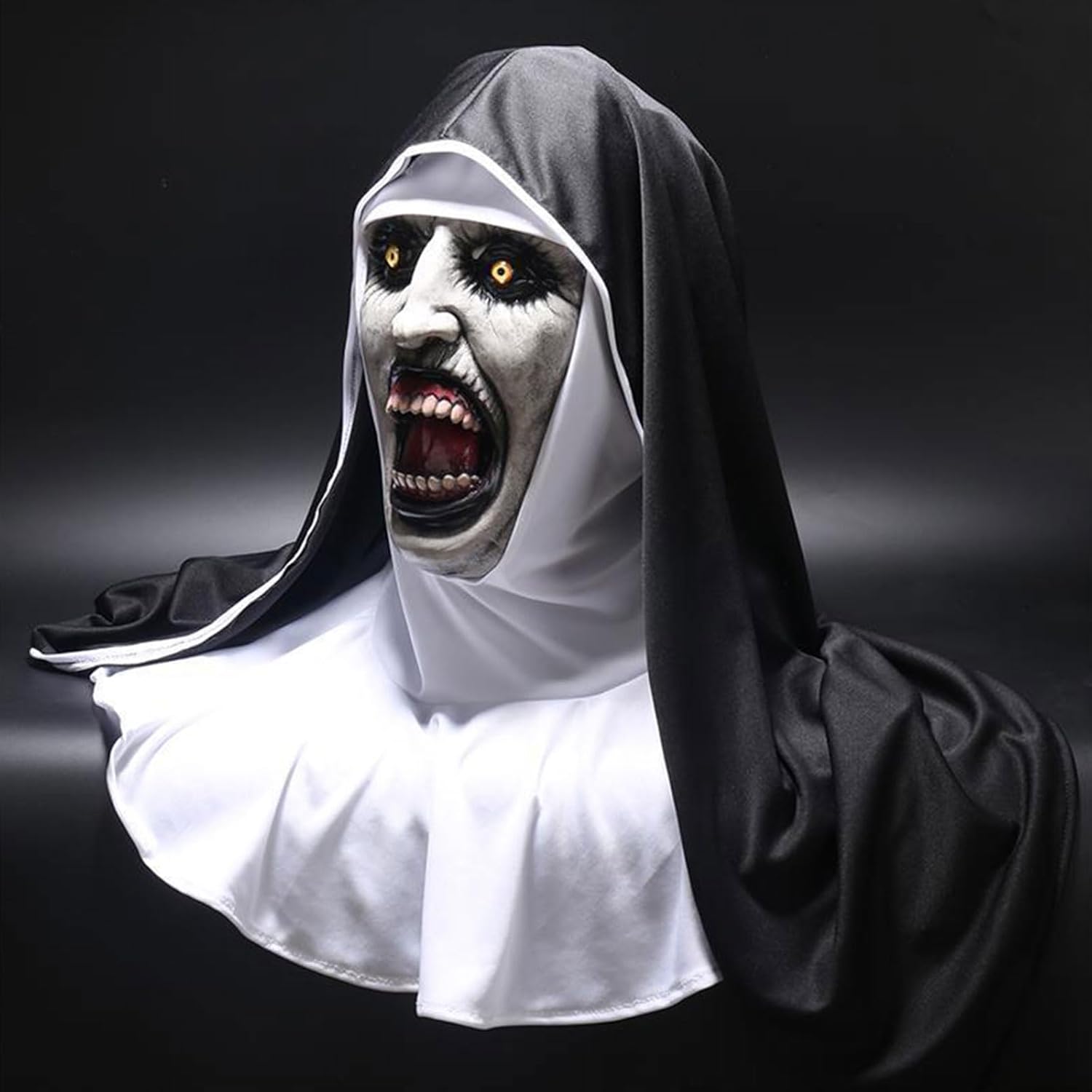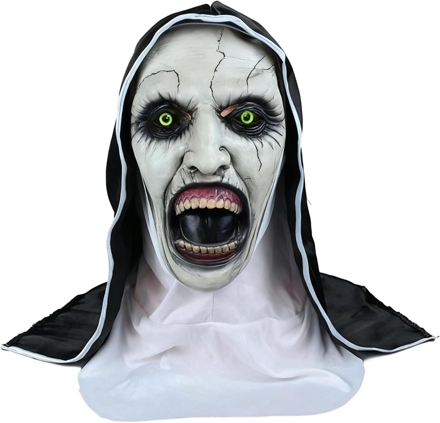 Scary Nun Mask with Head scarf, Creepy Open Mouth Evil Review halloween scary costumes