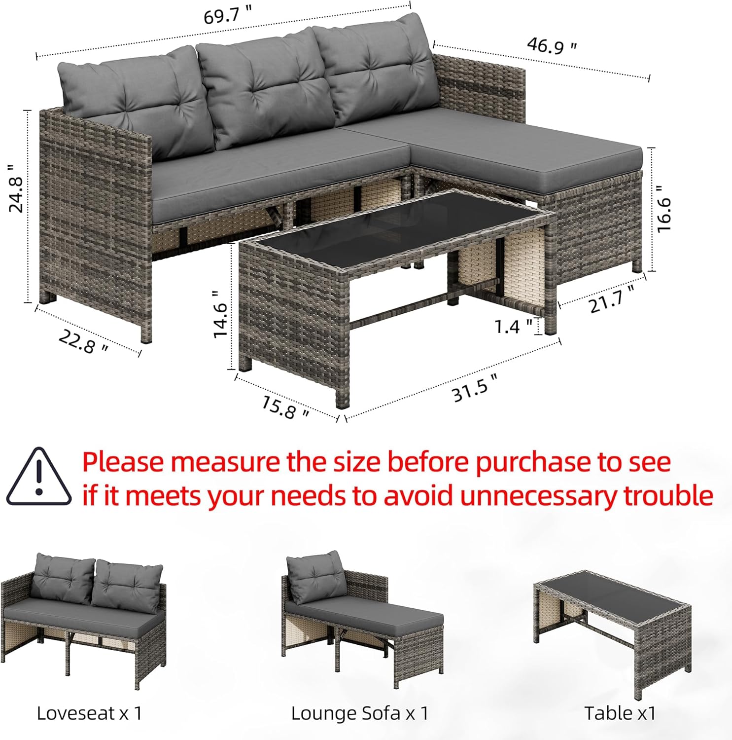 Shintenchi 3-Piece Outdoor Patio Furniture Sets, Wicker Review patio furniture