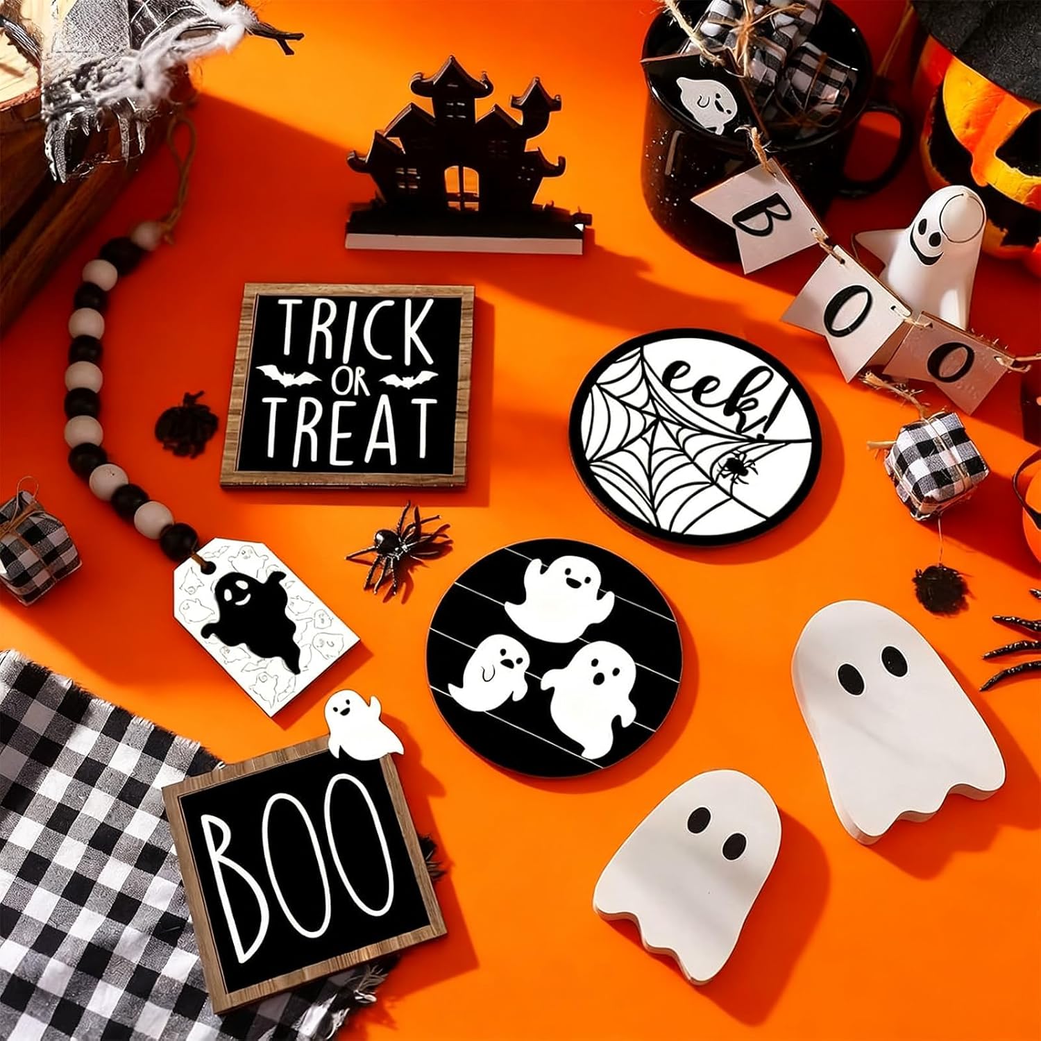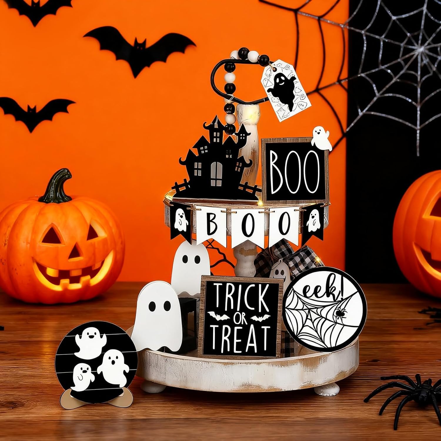 Simple polymer 19 Pcs Halloween Tiered Tray Decorations Review halloween table decorations
