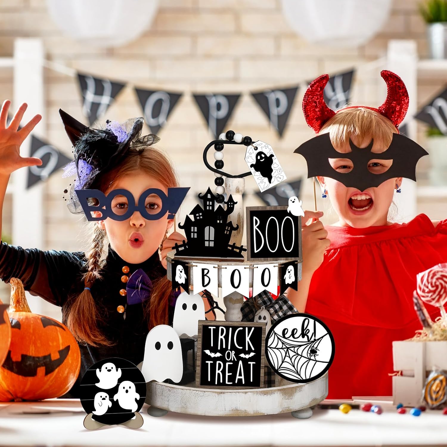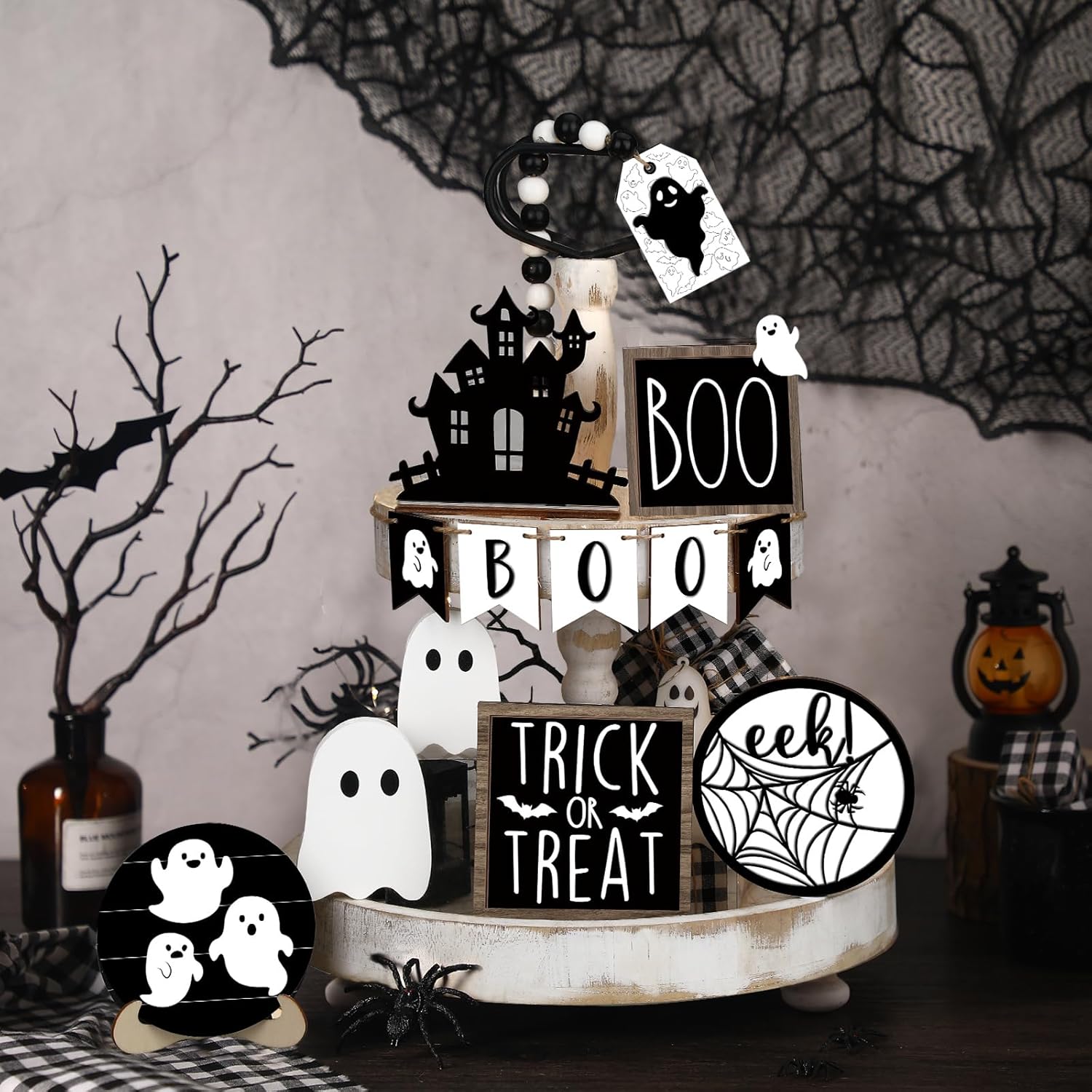 Umigy 15 Pcs Halloween Tiered Tray Decor Set Cute Ghost Review cheap halloween decor ideas