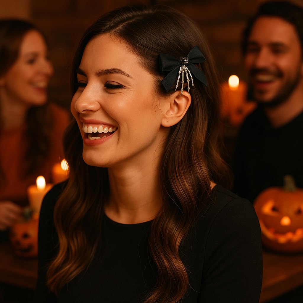 Utavu 2Pcs Skeleton Hand Hair Clips with Bowknot – Cute Review halloween kids accessories