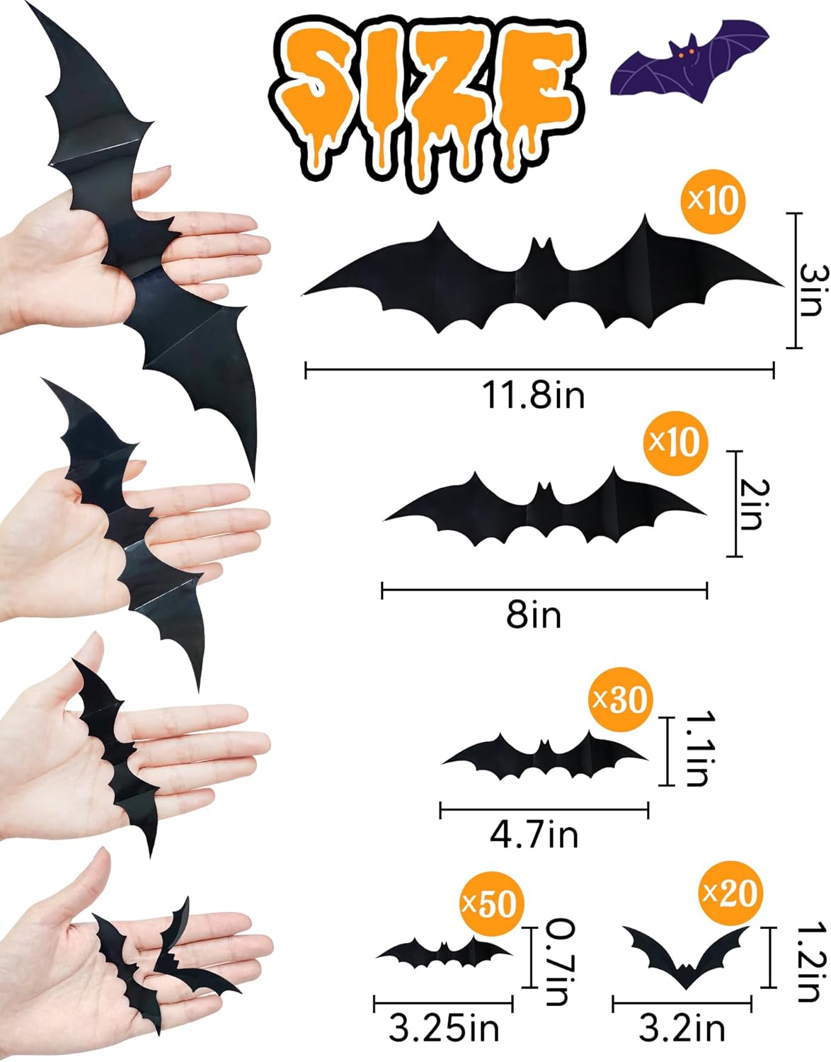 120 Pcs Halloween Decorations 3D Bats Decor, 4 Sizes Review affordable halloween decorations