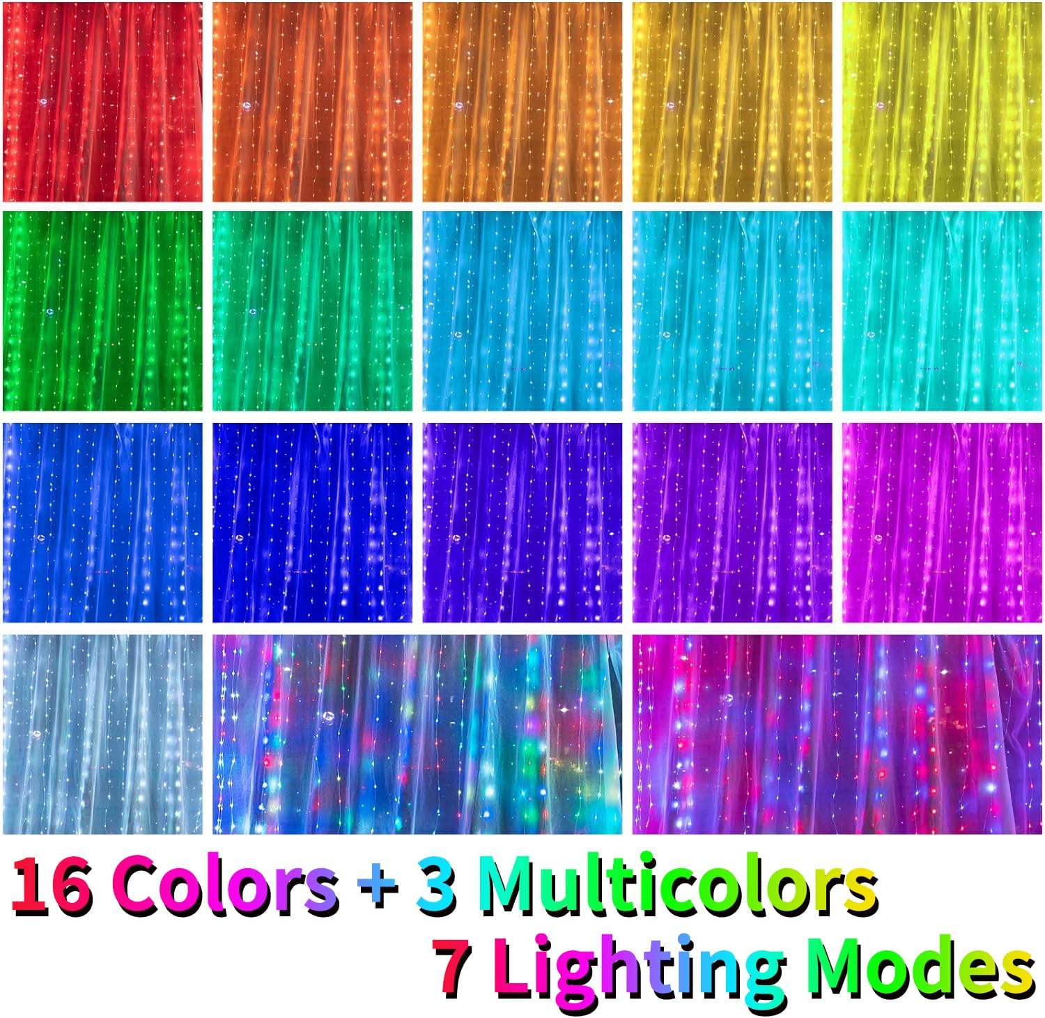 16 Colors Changing Curtain Lights – 250 LED 9.8 X 8.8 Review halloween lights