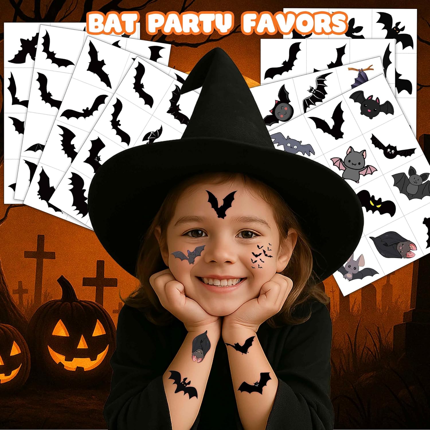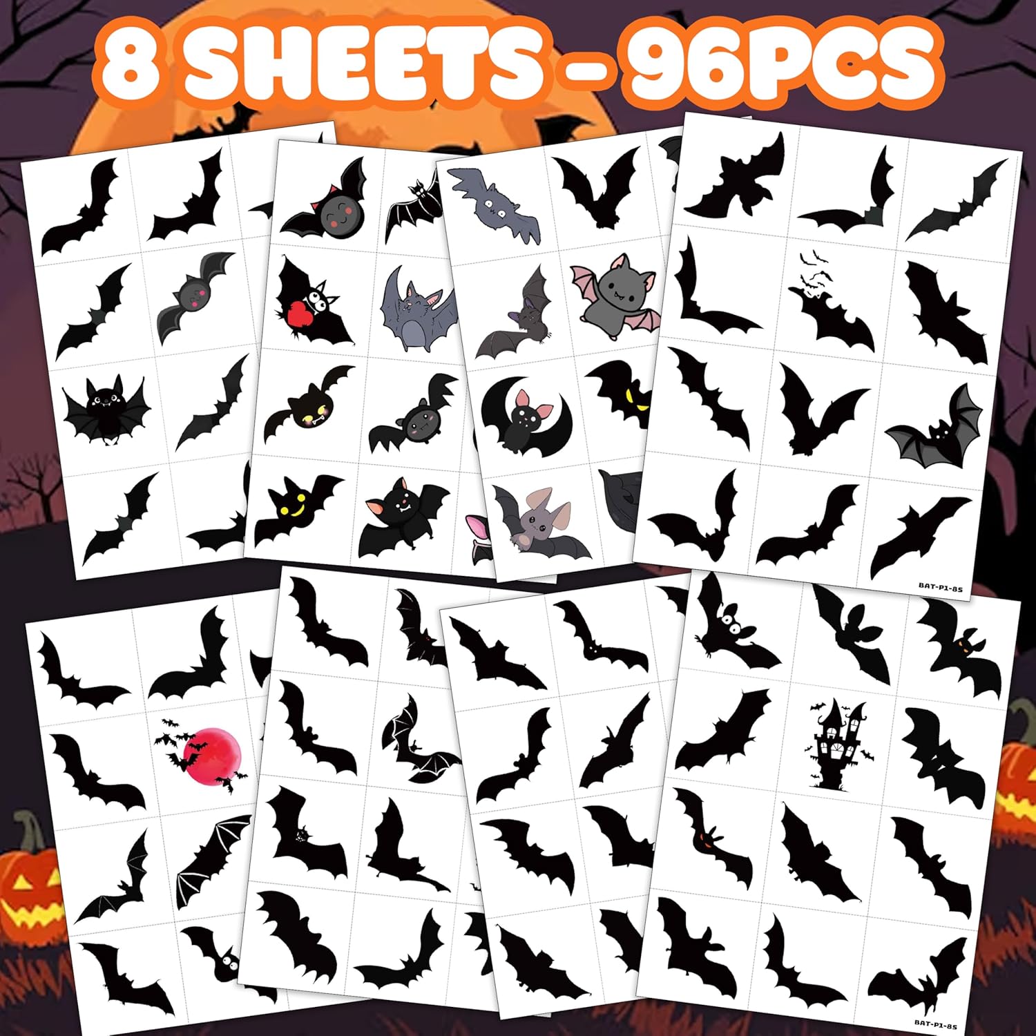 Home - Halloween - 96 PCS Bat Halloween Pre-Cut Temporary Tattoos Birthday Review halloween party decoration ideas