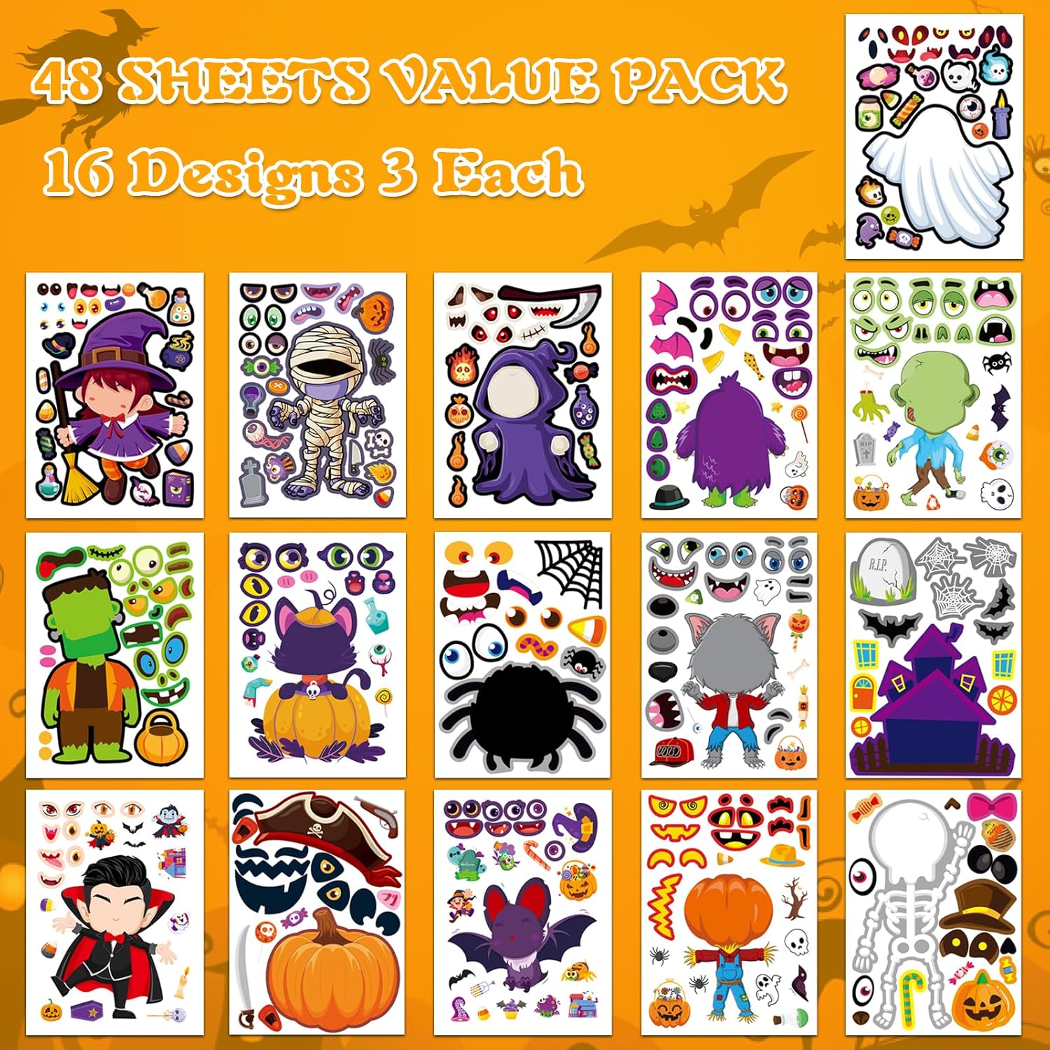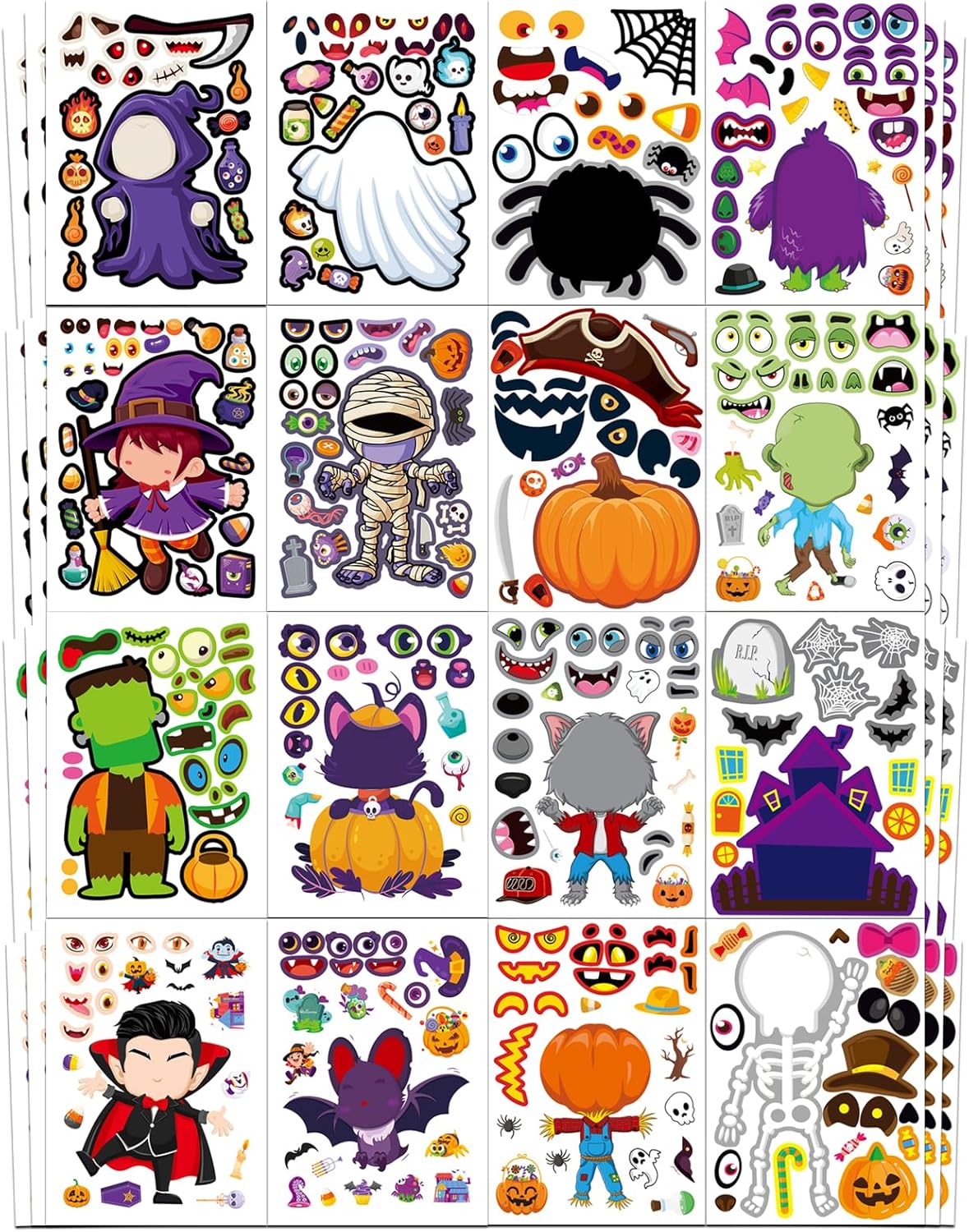 Home - Halloween - Aowplc 48 Halloween Make-a-Face Sticker Sheets for Kids Review halloween party ideas