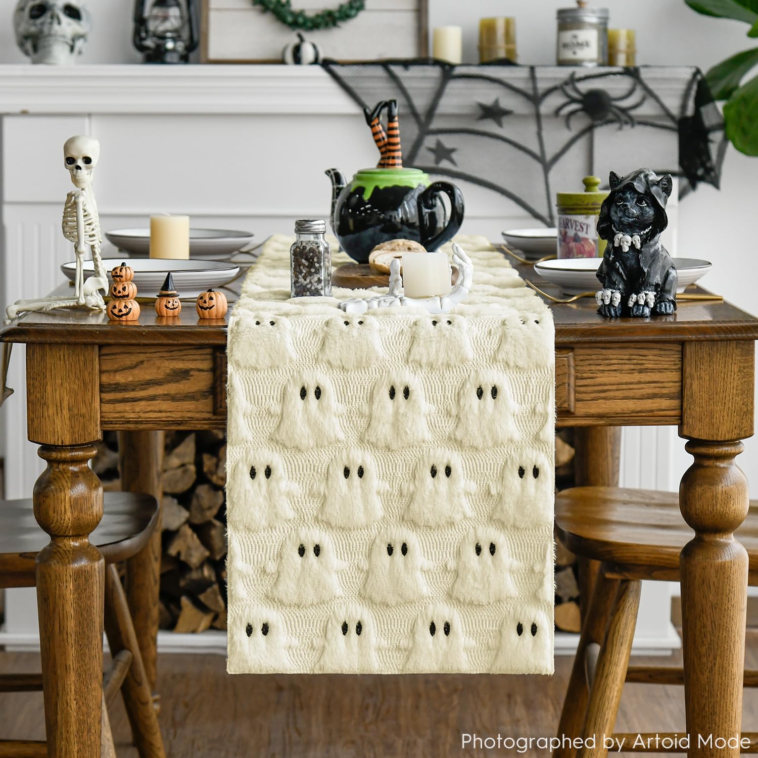 Artoid Mode Beige Ghost Soft Plush Faux Fur Jacquard Review halloween table decorations