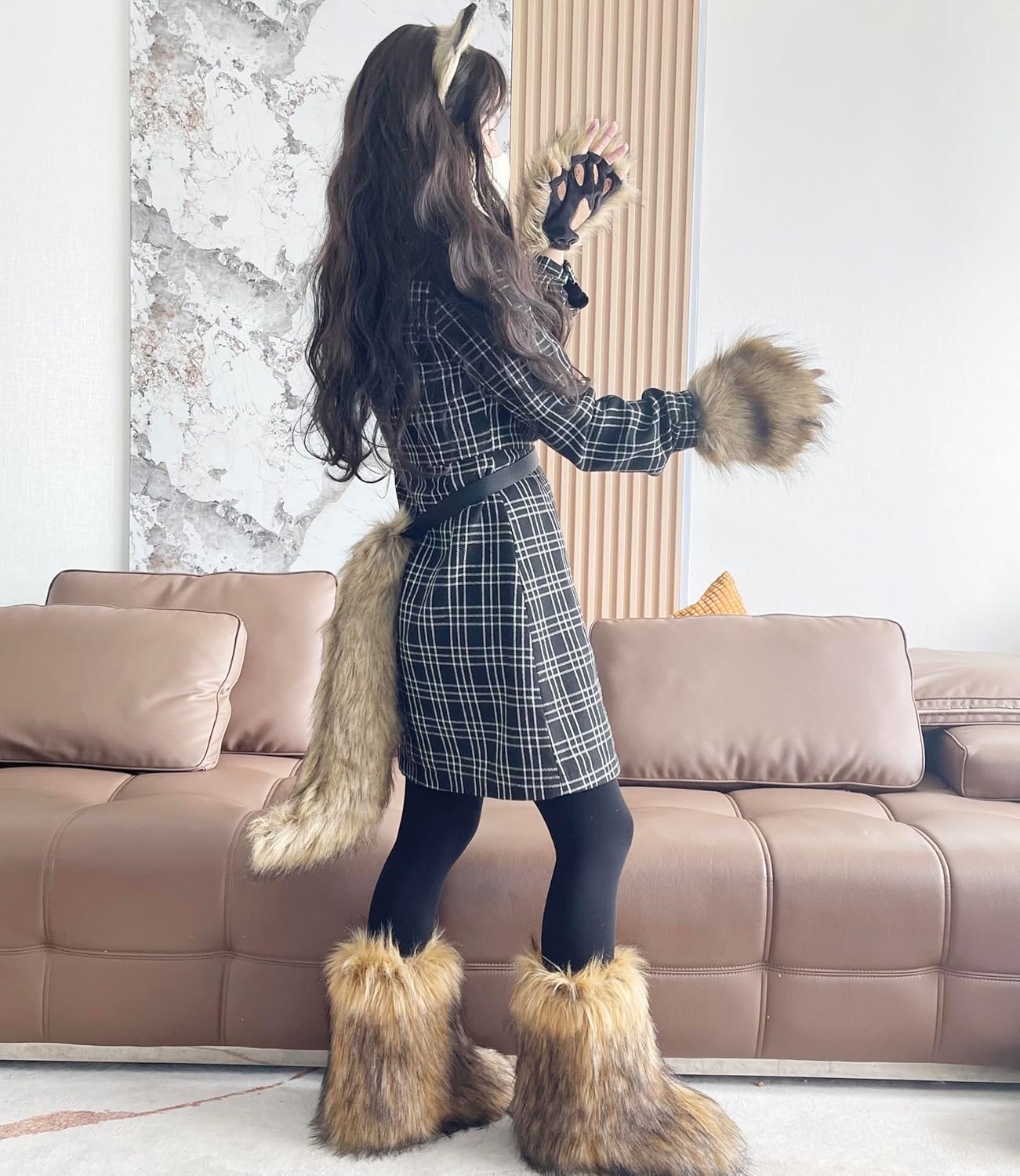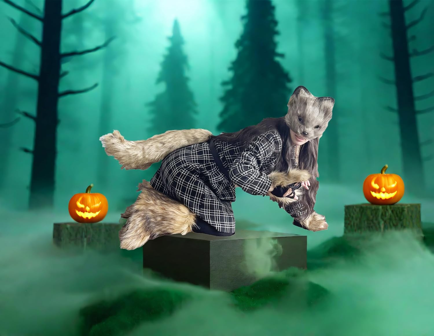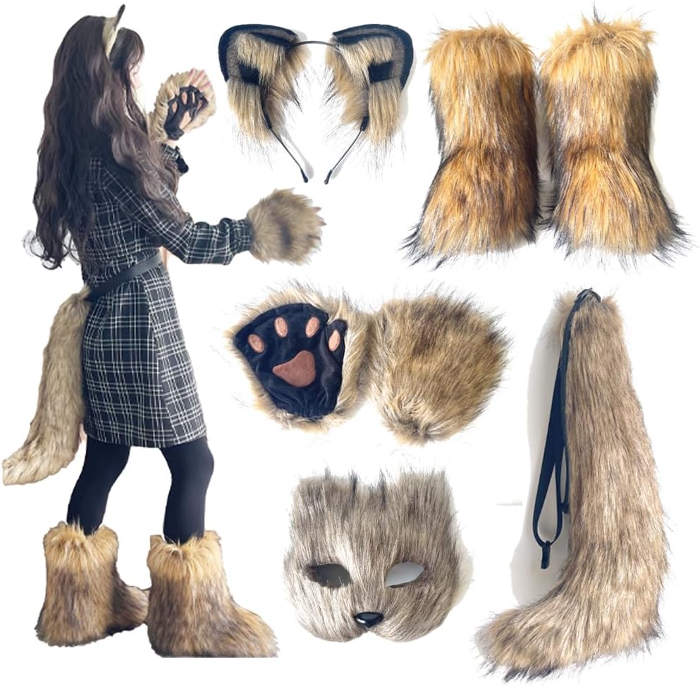 cat mask and Tail Animal Costume with wolf Ears Paws Review halloween family costumes