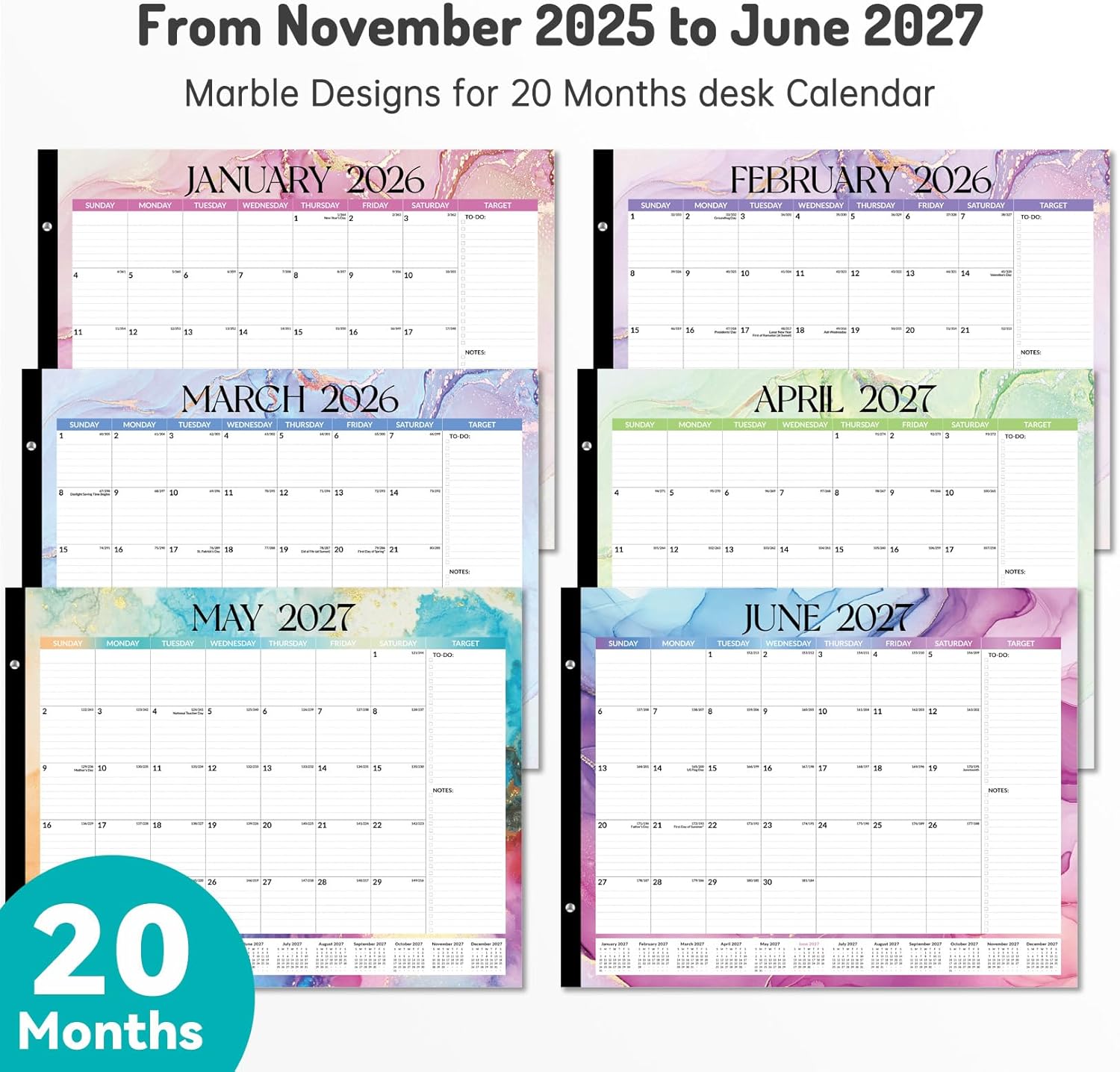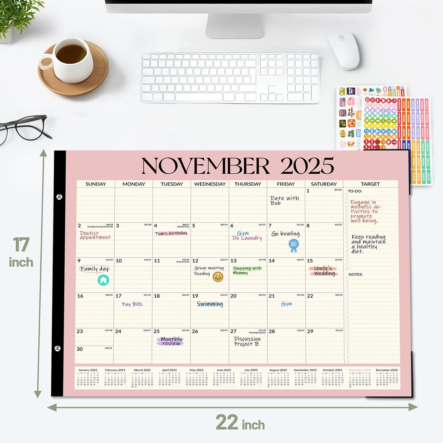 Forvencer 22″ x 17″ Large Desk Calendar 2026, 20 Months Review desk calendar