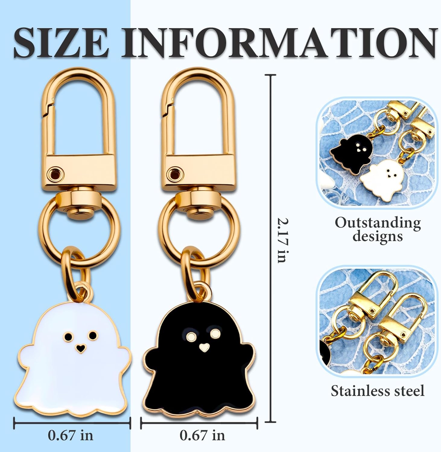 While the main ghost design is consistent, some manufacturers may offer minor variations (e.g., the ghost holding a pumpkin, bat, or wearing a hat). It’s best to check individual product listings for specific character or color options if you’re exploring diverse halloween gift ideas. - How does the Funny Ghost Keychain compare in size to a standard car key fob?
