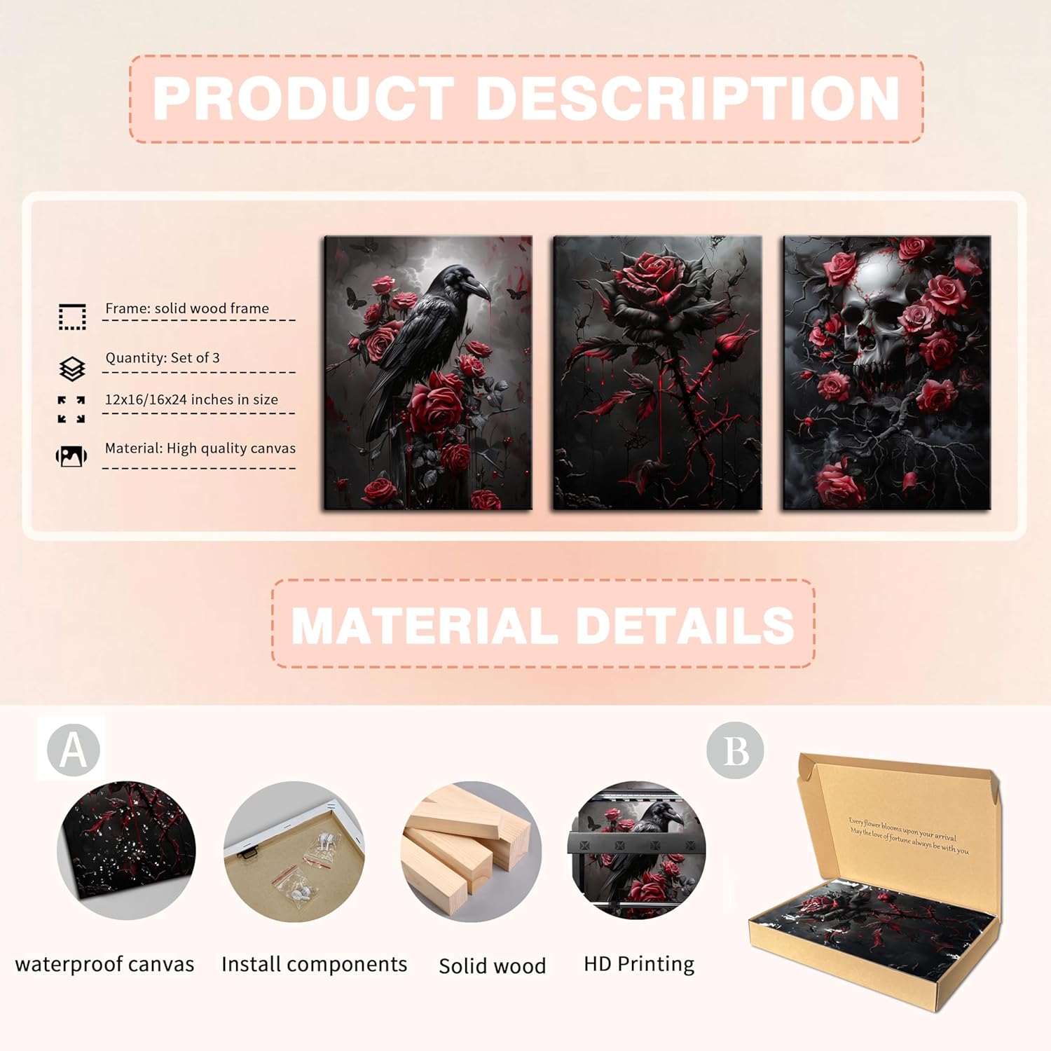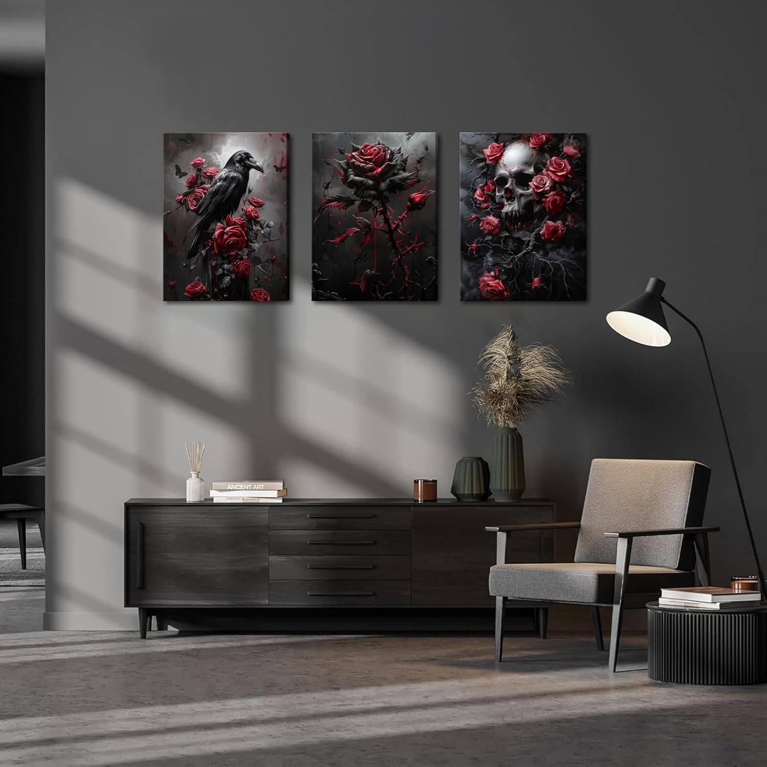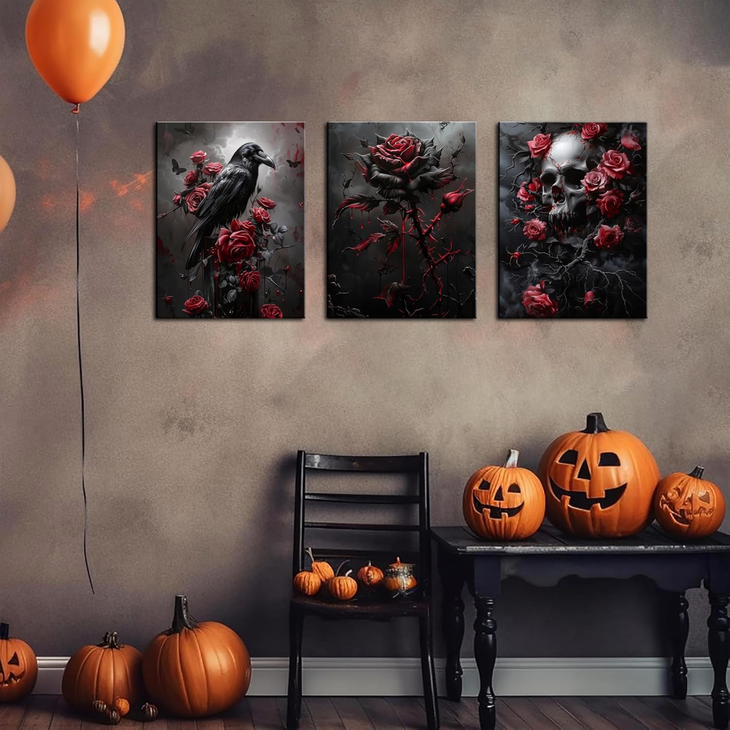 Gothic Canvas Wall Art Set of 3, Romantic Rose Review halloween decor for apartments