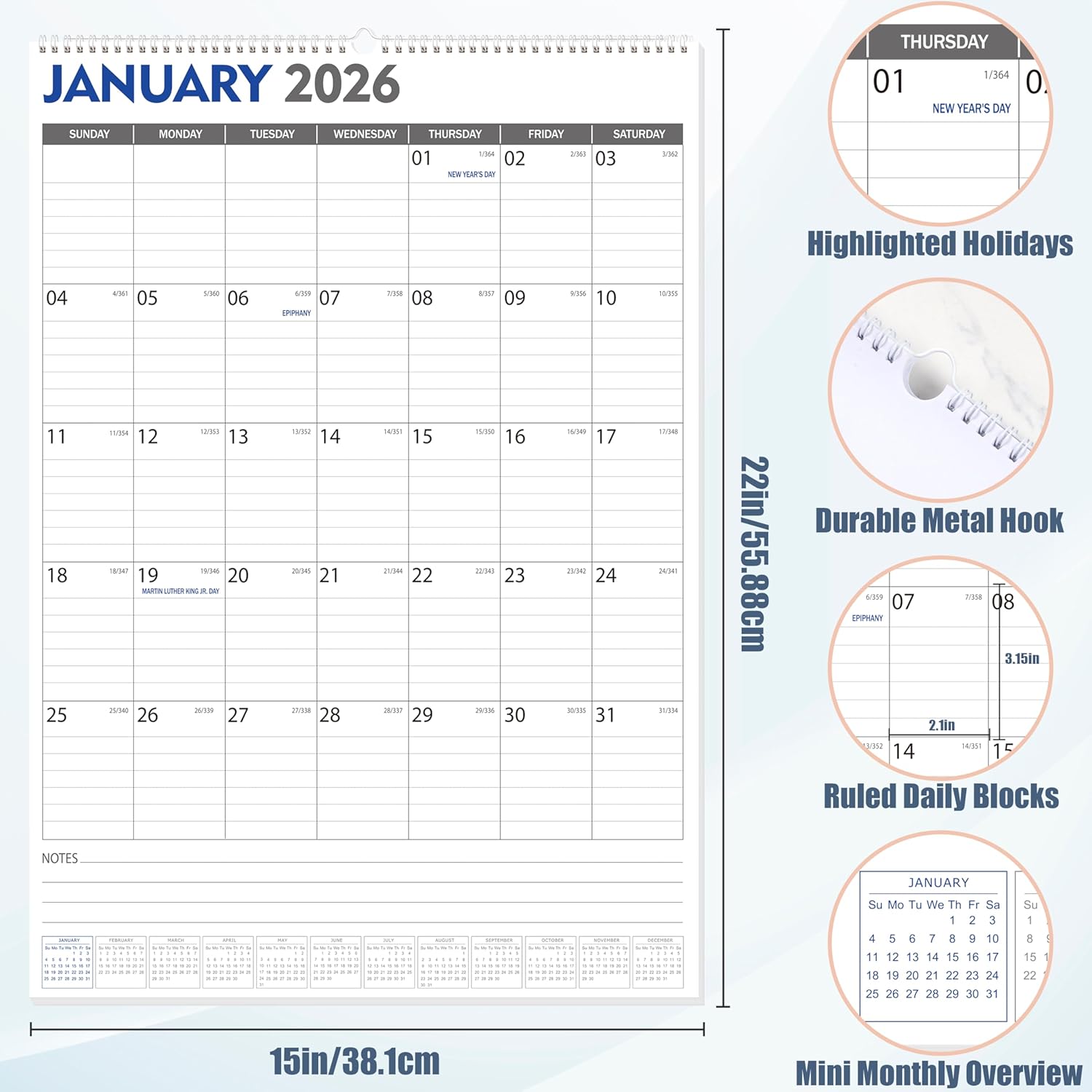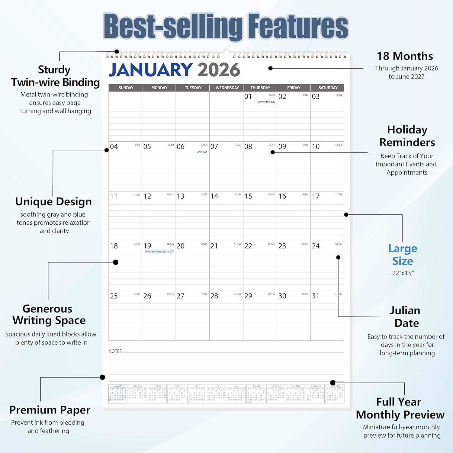 GuassLee Large Wall Calendar 2026-2027, 22″x15″ Review wall calendar