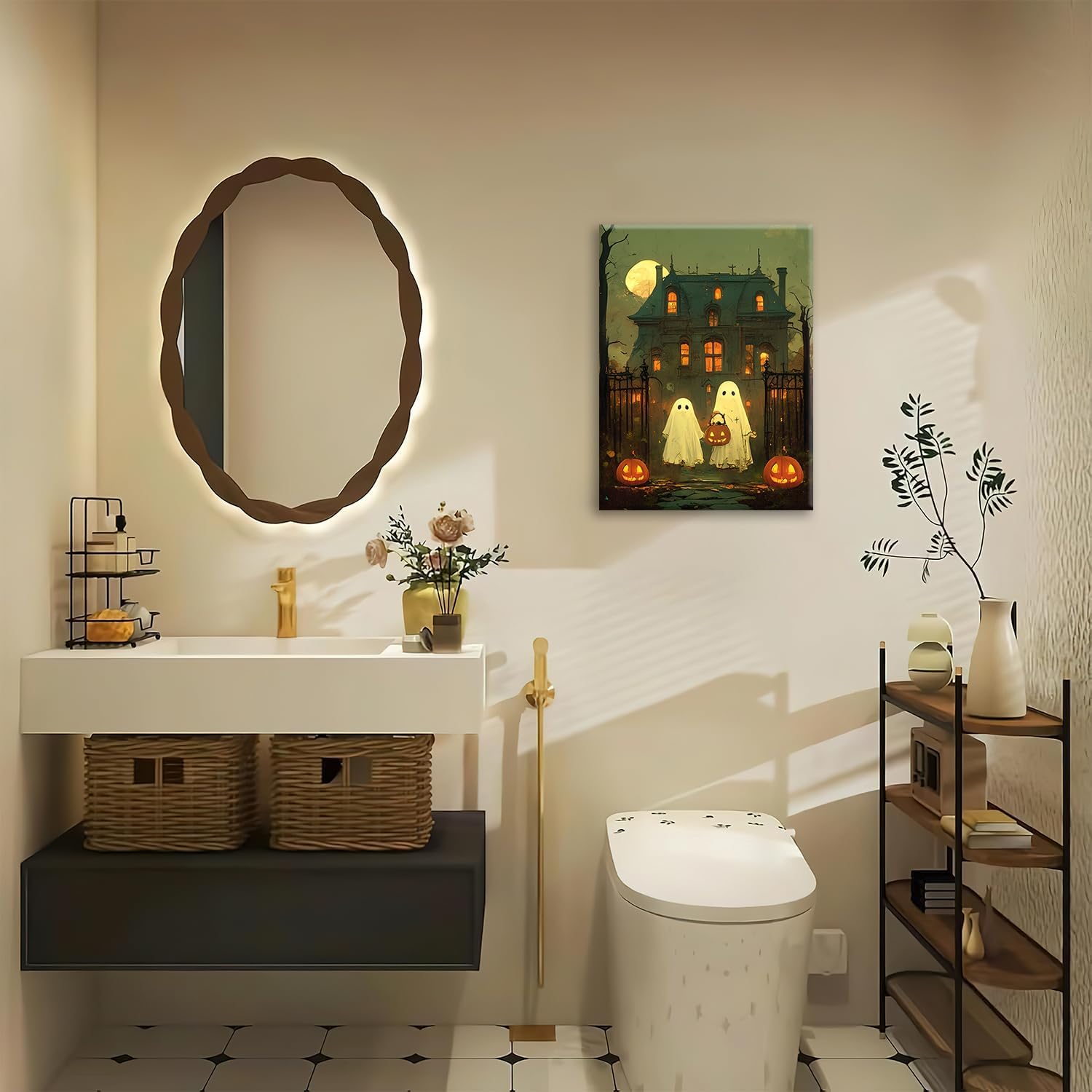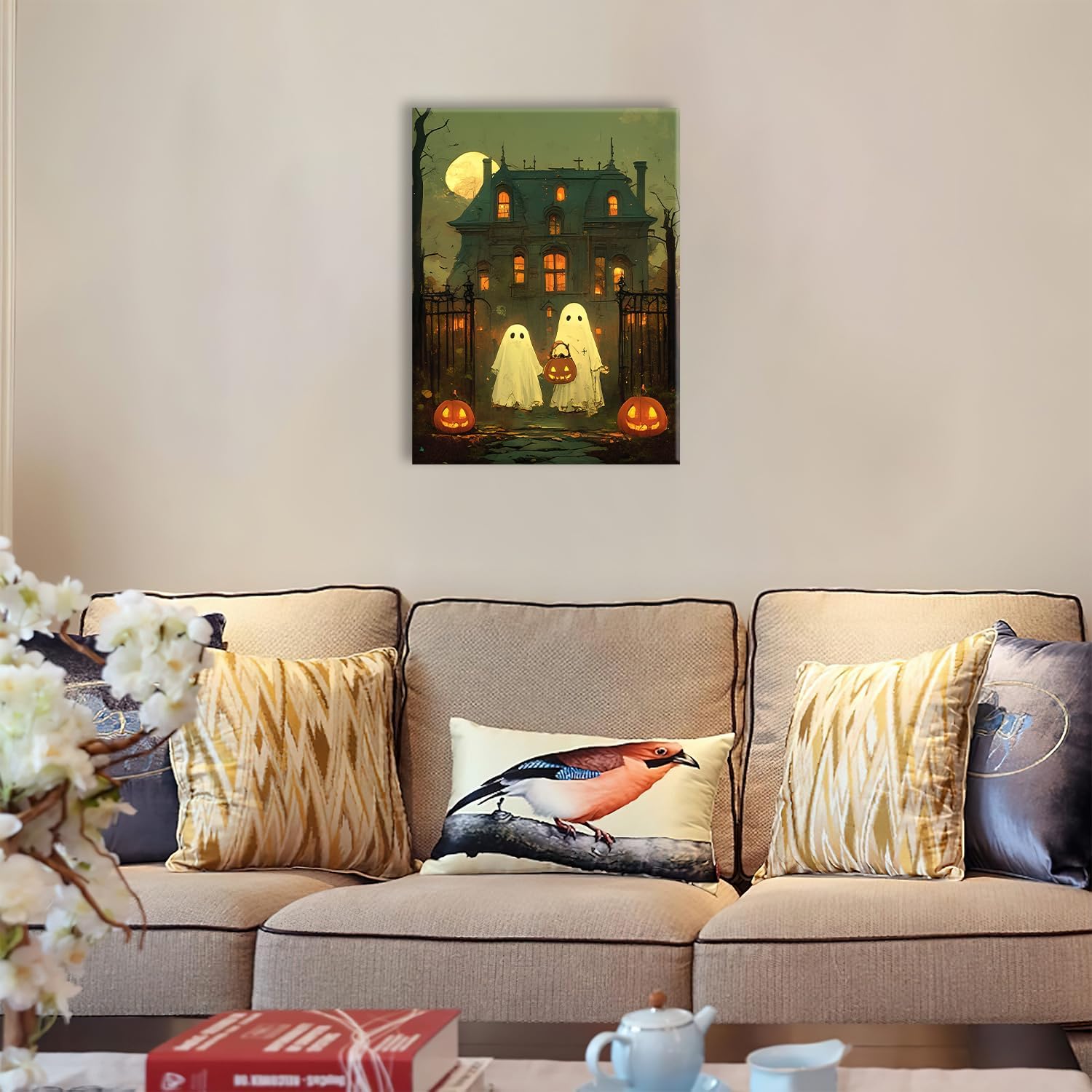 Halloween Ghost Canvas Wall Art Vintage Spooky Painting Review cheap halloween decor ideas