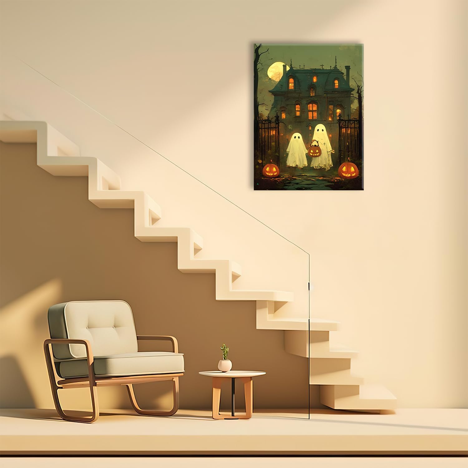 Home - Halloween - Halloween Ghost Canvas Wall Art Vintage Spooky Painting Review cheap halloween decor ideas