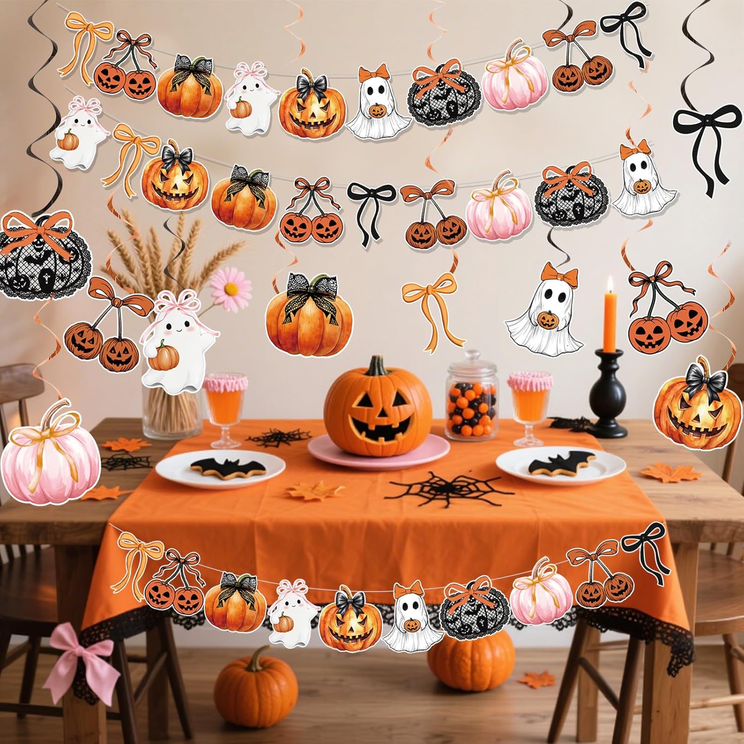 Home - Halloween - Halloween Party Decorations Bows and Pumpkins Hanging Review halloween kids decorations