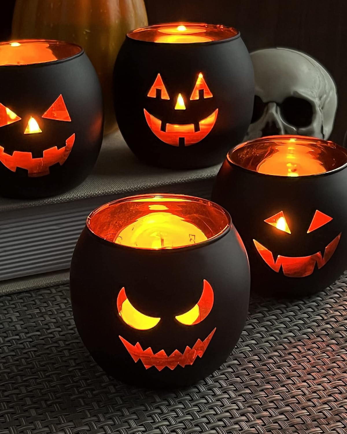 Stability and Placement: With flat, stable bases, each Jack O’ Lantern sits securely on various surfaces including polished wood, glass, and fabric tablecloths. Their weight also contributes significantly to their stability, making them resistant to accidental nudges or minor drafts from open windows. This is a critical factor for table decor, where frequent movement or interaction is common. The uniform size (approximately 6 inches tall, 5 inches wide) makes them ideal for grouping in clusters, linear arrangements, or distributing individually across a larger surface area, offering considerable flexibility in staging.