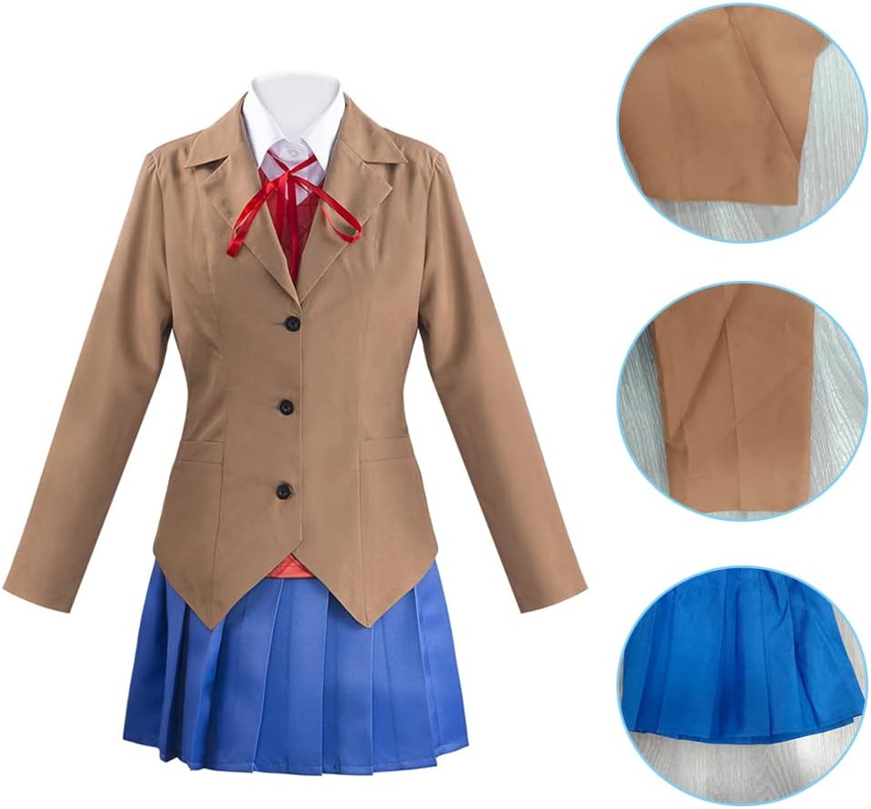 Home - Halloween Costumes - Juejuezi Doki Doki Monika Outfit Yuri Uniform Dress Review halloween cosplay outfits