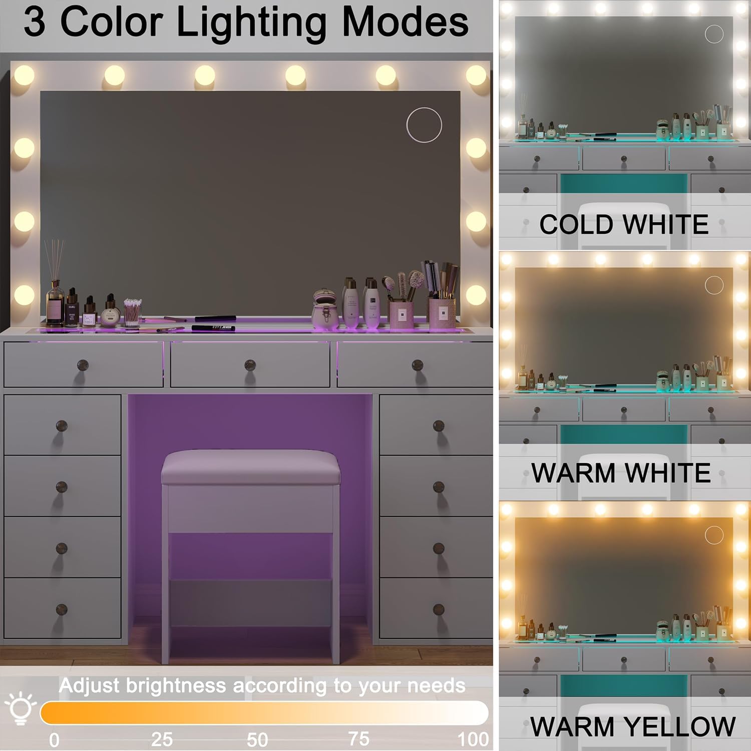 Added to wishlistRemoved from wishlist 0 Glass Top Makeup Vanity with LED Lighted Mirror, 11 Review makeup vanity