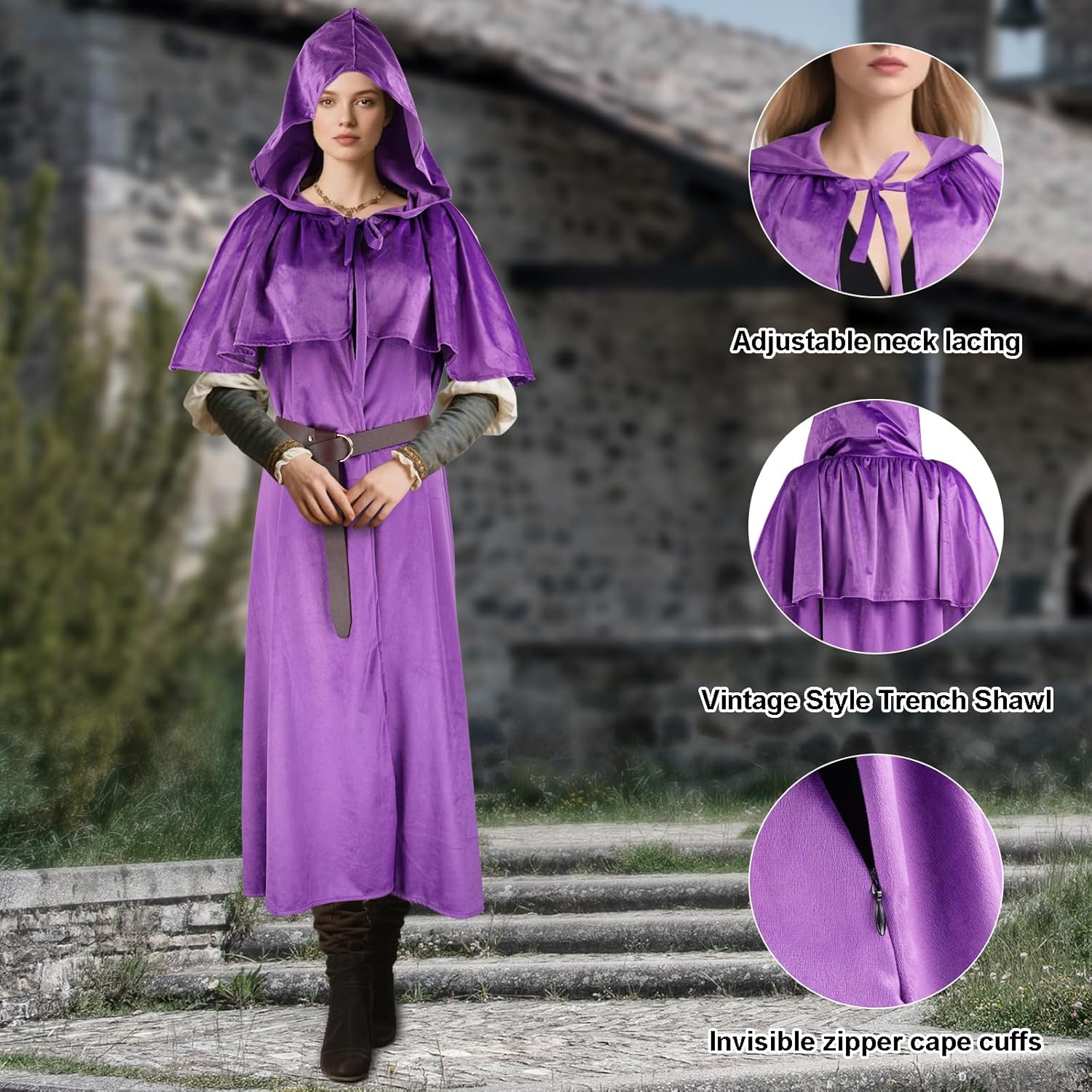Home - Halloween Costumes - Niurui Renaissance Hooded Cape with Vintage Belt Review halloween costumes for men